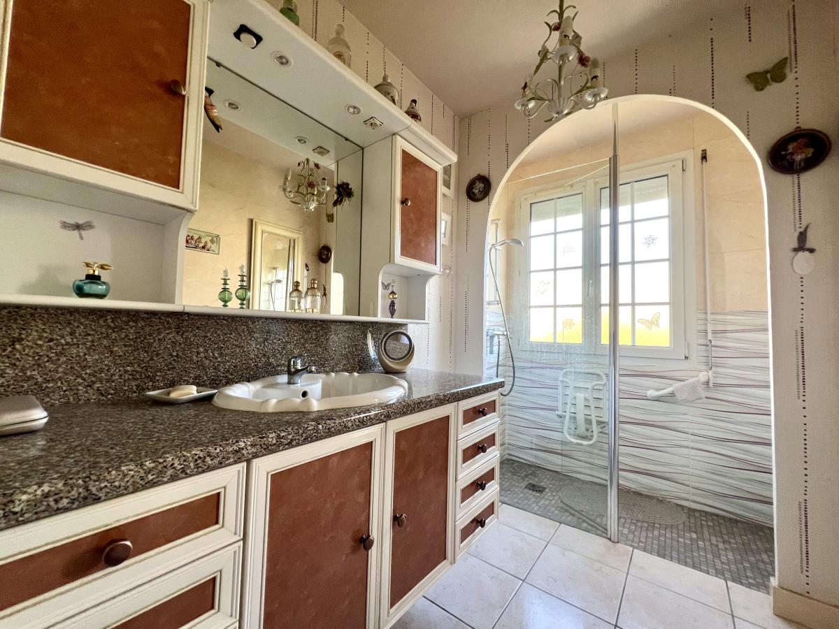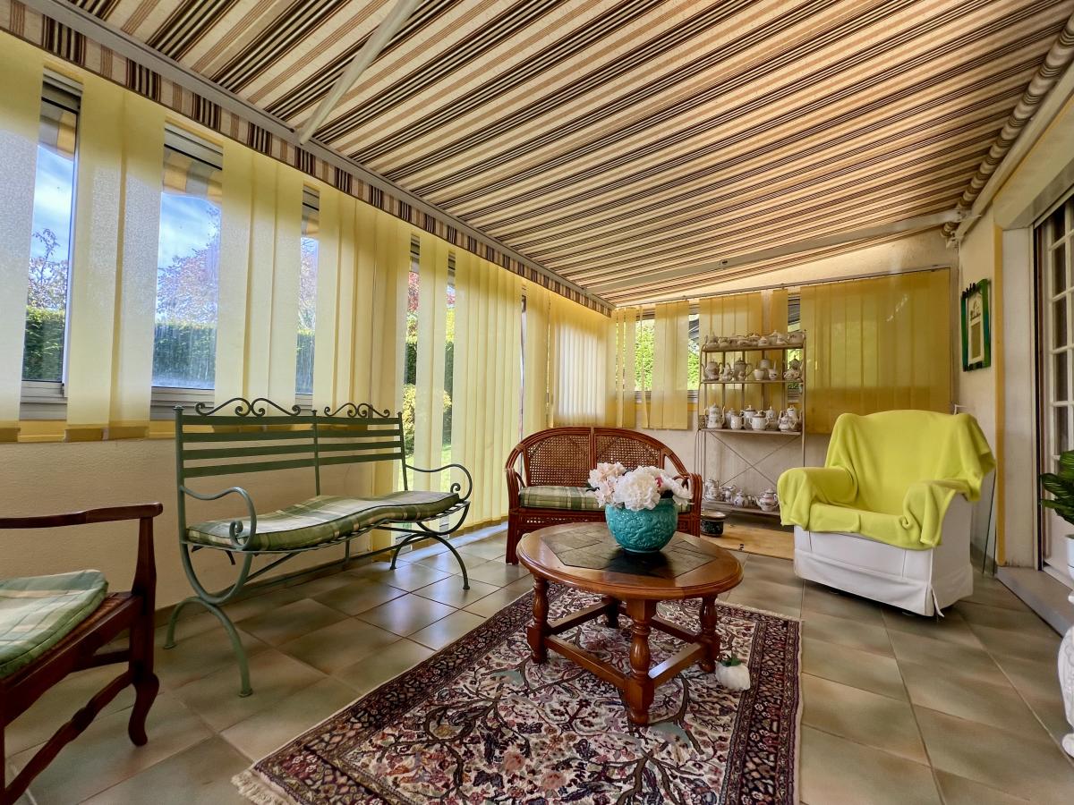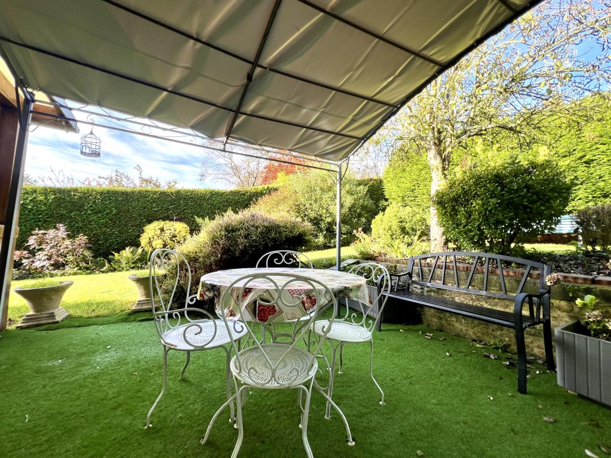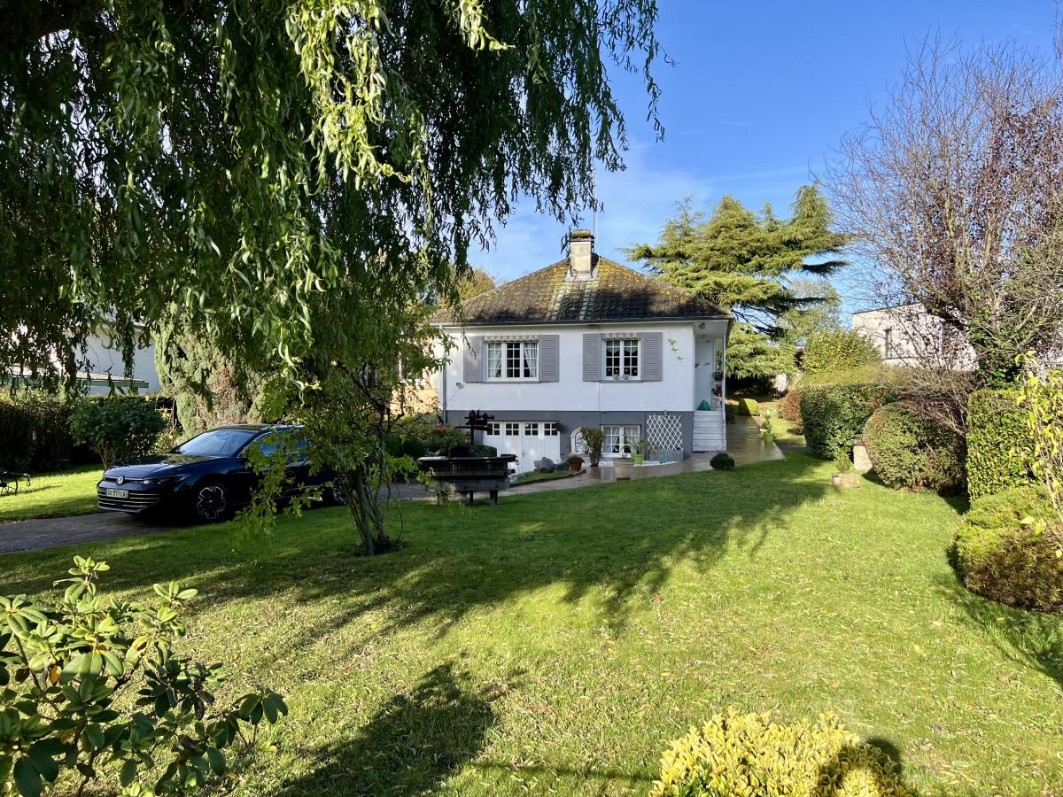Bieville-Beuville, dans une rue très calme, pavillon de plain pied surélevé de 100 m² comprenant entrée, cuisine, séjour salon, véranda, dégagement, wc, salle d'eau, buanderie, trois chambres dont une avec salle d'eau. Sous-sol complet avec garage. Très beau terrain de 1.200 m² au calme, sans vis à vis et bien exposé.
