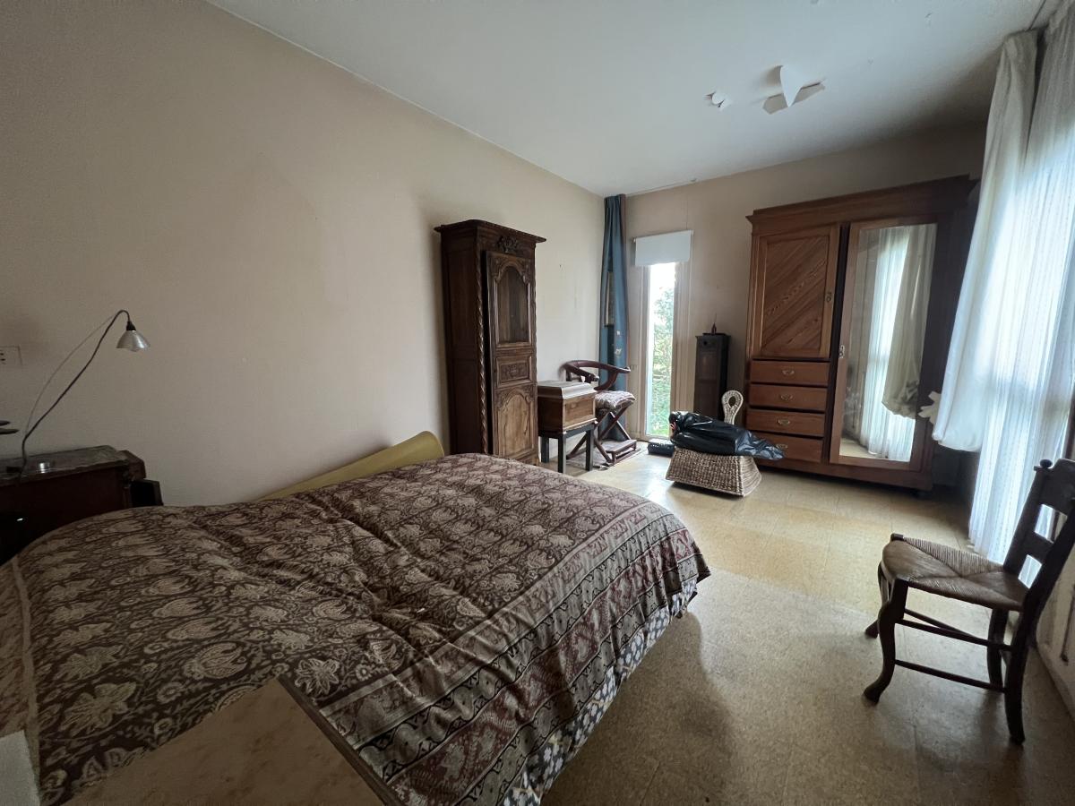 BIEVILLE BEUVILLE - CAEN nord bus de ville - HORS LOTISSEMENT - Atypique maison d'architecte de plain pied de 166 m2, comprenant entrée, séjour salon avec cheminée 46 m2, cuisine, 5 chambres dont une avec salle de bains, 2 salles d'eau, bureau, arrière cuisine, wc. Garage attenant de 40 m2. Double garage en annexe. Terrain 3800 m2. Travaux à prévoir. DPE : F