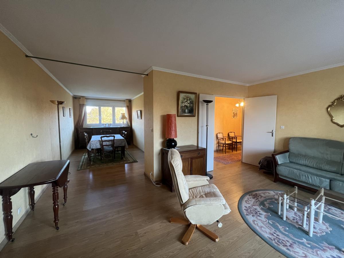 Rive gauche, proche mémorial et clinique Saint Martin. Appartement 4 pièces de 84 m² dans résidence avec ascenseur comprenant entrée avec placard, séjour salon de 36 m2 avec balcon de 7 m2, cuisine aménagée, 2 chambres (possibilité 3), salle d'eau, WC. Cave. Parking couvert en sous-sol. Charges 250 euros mensuel. Bon état général. DPE D.