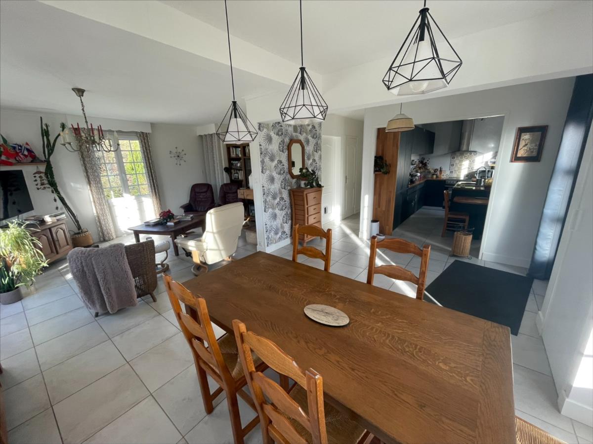 NOUVEAU 'Chez des Notaires à Mes Côtés' AUX PORTES DE FALAISE.Au calme et environnement verdoyant.Une maison individuelle d'une surface d'environ 127m².composée d'une pèce de vie ouverte sur une cuisine aménagée (env 48m²), deux chambres, salle d'eau et wc.A l 'étage : pièce palière /bureau, une grande chambre avec coin dressing ( env 19m²).Grenier aménageable : possible 4ème chambre (env 19m²).Sous-sol complet. Jardin arboré 4 414 m².Bâtiment annexe (env 38m²).