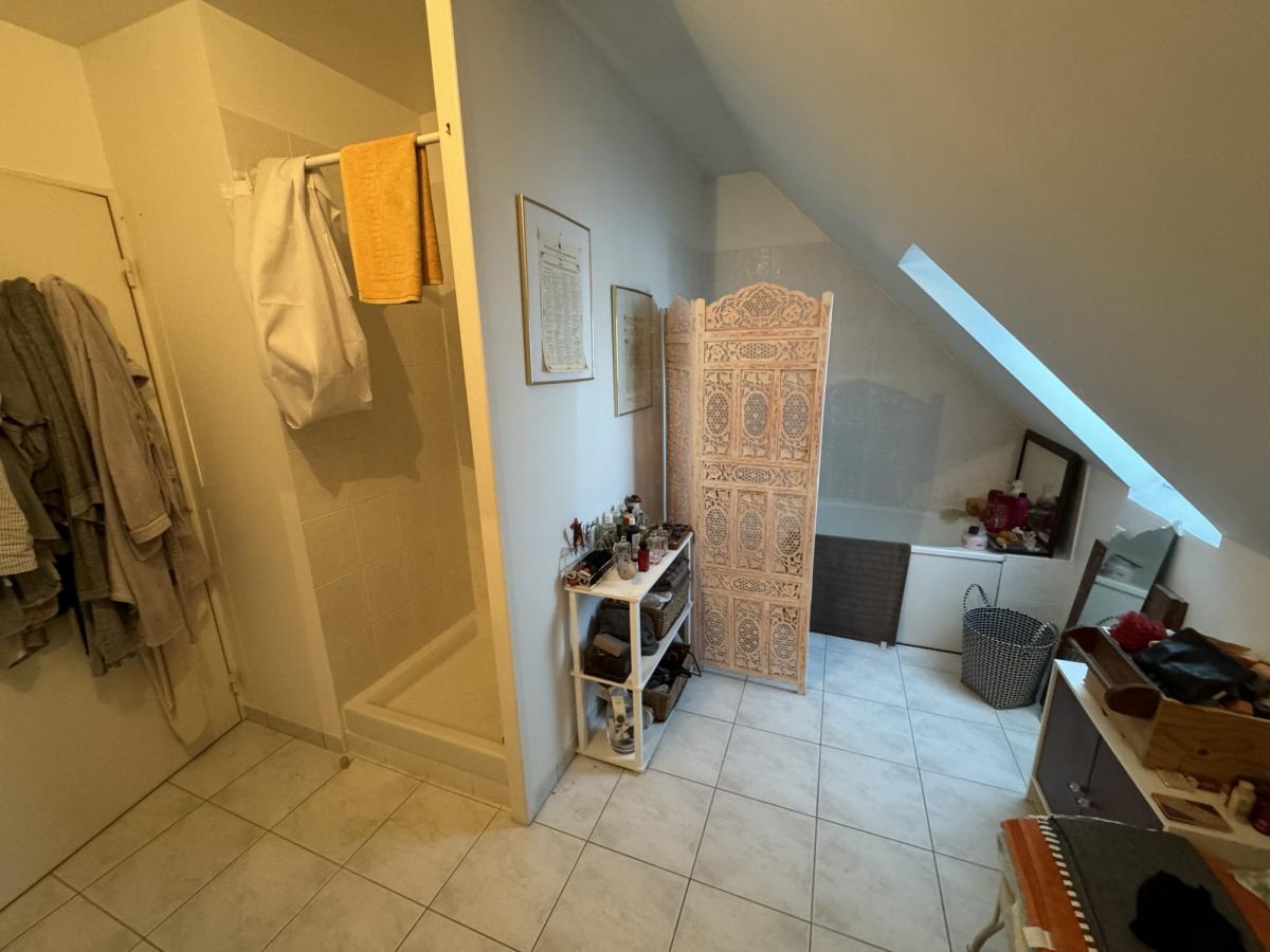 PONT L'EVEQUE Maison de 2006 comprenant: RDC: pièce de vie avec cuisine aménagée ouverte, cellier, wc et garage Etage: palier, 2 belles chambres, salle de bains avec douche et baignoire, dressing et wc. Terrain de 250m²