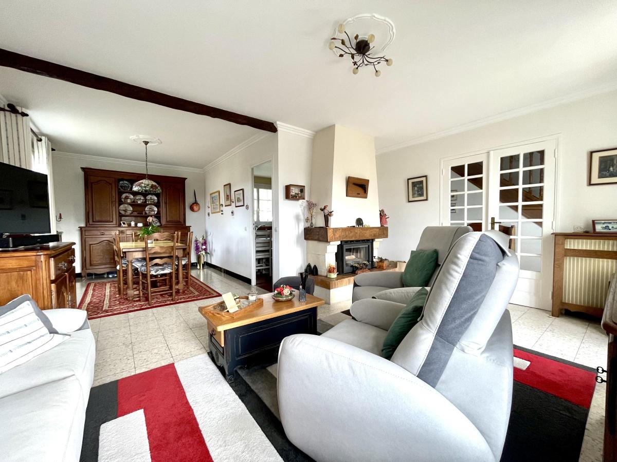 Maison traditionnelle de 128 m² , en très bon état . Elle se compose d'un sous-sol total divisé en garage , atelier Au rez-de-chaussée une entrée et couloir desservant un séjour avec cheminée/insert , cuisine aménagée et équipée , trois chambres , une salle d'eau et wc séparé . A l'étage palier desservant deux chambres , un dressing, une salle d'eau et wc Terrain clos de 642 m²
