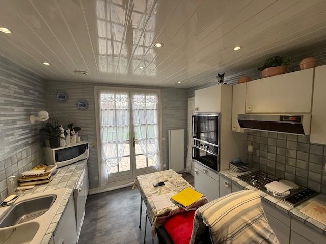 - Au rdc : entrée, wc, cuisine aménagée et équipée, salon cheminée, salle à manger, wc, bureau.