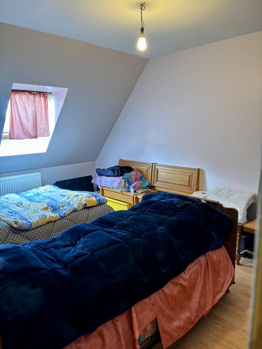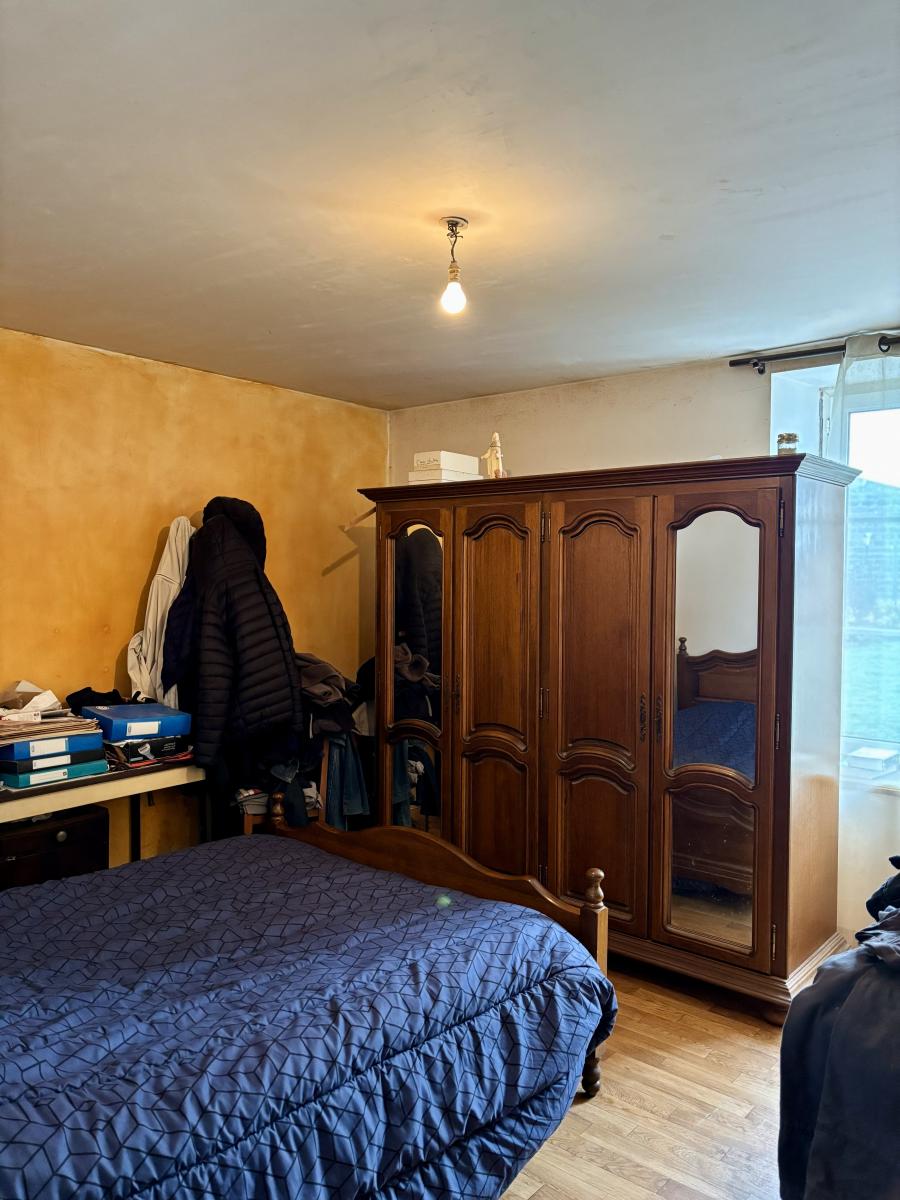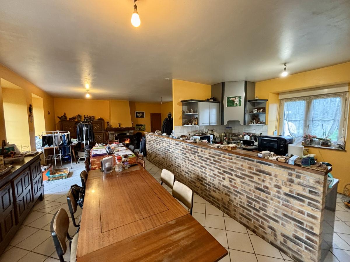 - Au rez-de-chaussée : entrée, vaste pièce de vie avec cuisine ouverte et poêle à bois, une chambre, une salle de bains et un WC. On y trouve également une arrière-cuisine et une cave.