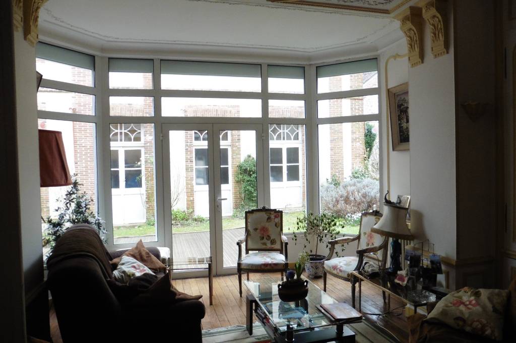 - au RDC : entrée, bureau (18m²), salon (24m²), salle à manger ( 20m²), cuisine (13m²), arrière-cuisine (6m²), WC, entrée sur cour;