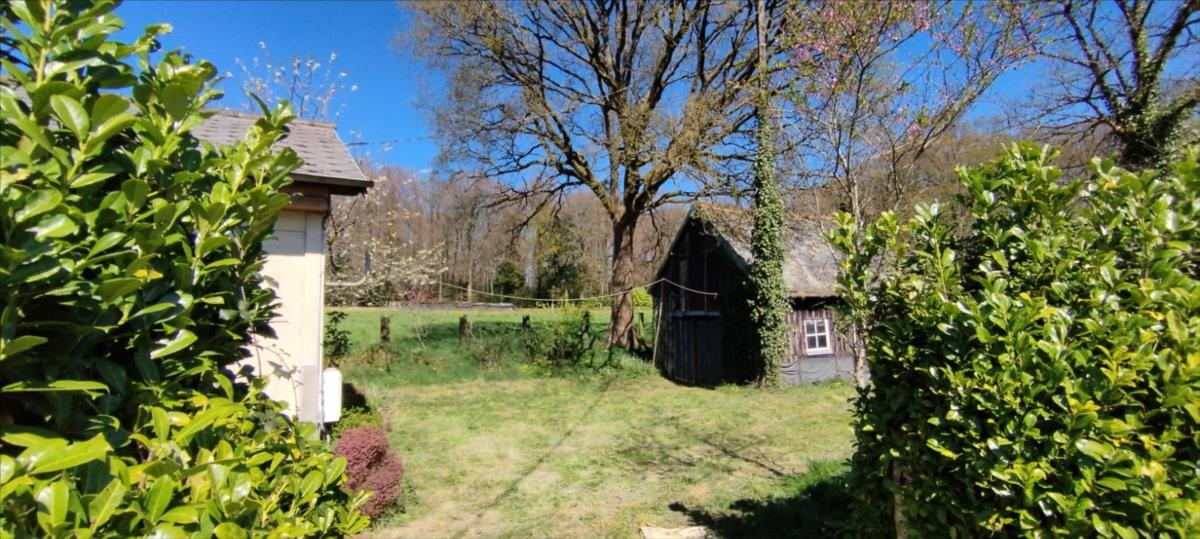 A proximité de la forêt : Maison d'habitation en bois, à rénover, sur un jardin de 942m², comprenant une pièce principale, trois chambres, salle d'eau/WC.Ancienne maison (hutte de sabotier) en bois à usage de garage-cellier.Dépendance et jardin arboré.Le tout pour une surface cadastrale de 942m².