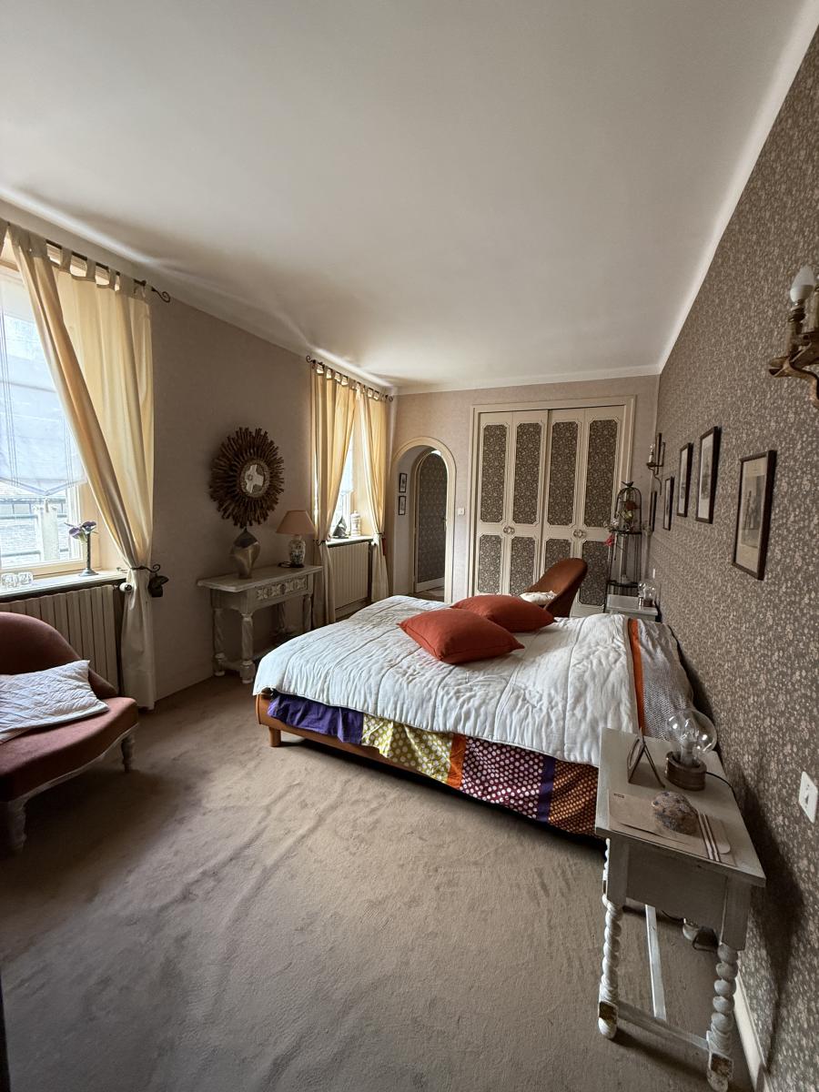 - Au rez de chaussée, entrée/pièce de vie avec poêle à bois, une cuisine aménagée, dégagement avec rangements, trois chambres avec chacune une salle de bains ou salle d'eau, un wc.