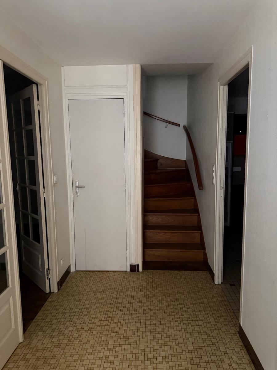 Cœur de ville, Maison, comprenant: Rez-de-chaussée : deux garages, chaufferie ; Etage 1 : entrée, cuisine aménagée et équipée, séjour salon, WC ; Etage 2 : palier desservant trois chambres, un bureau, salle de bains/WC. Grenier. Courette