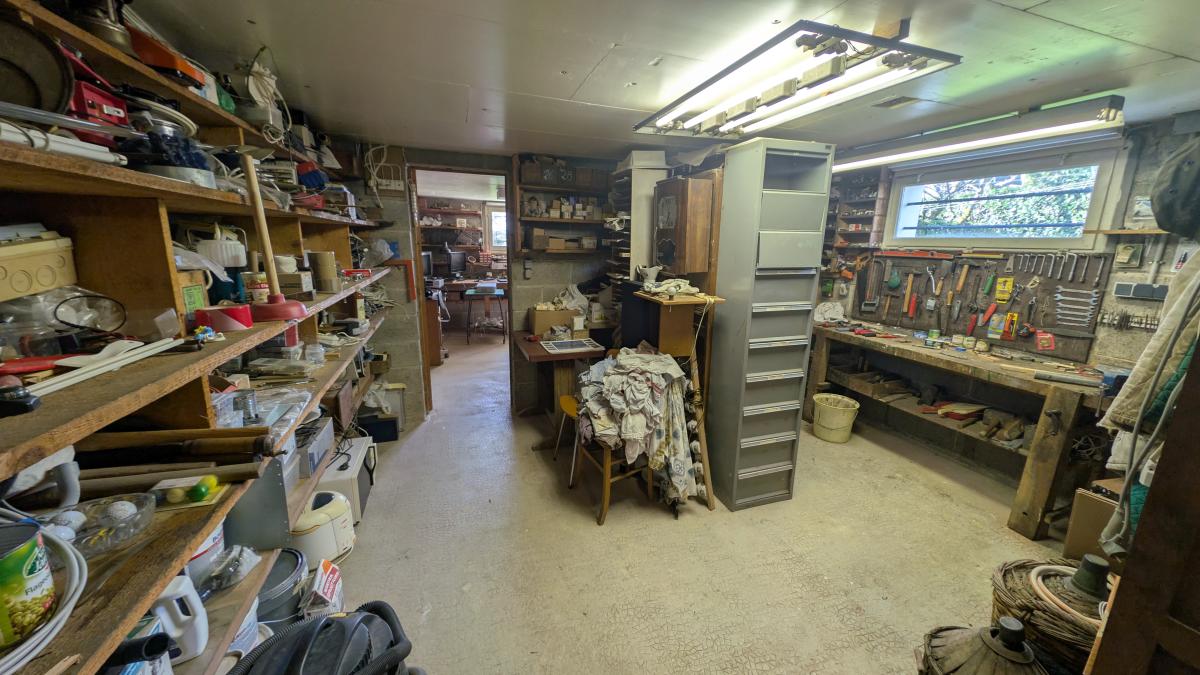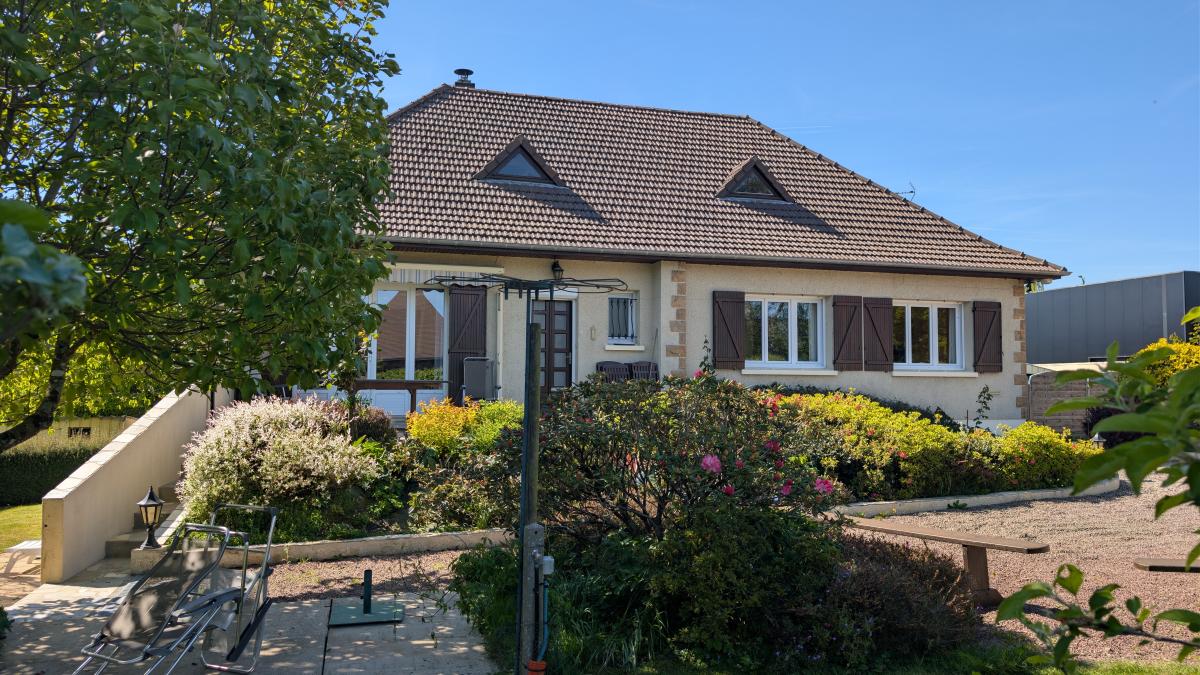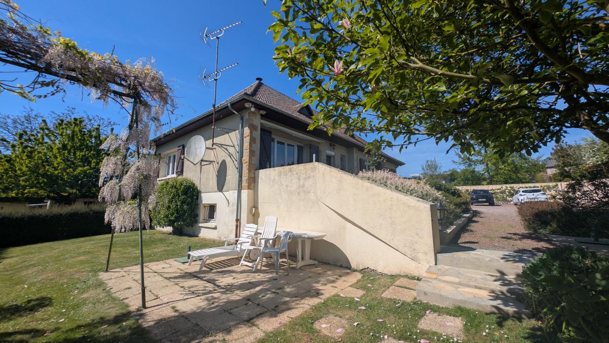 Maison construite en 1976 comprenant : au sous-sol : garage, atelier, cave, pièce et cellier. au rez-de-chaussée : entrée avec placards, séjour avec insert, cuisine aménagée/équipée, couloir desservant 4 chambres, salle d'eau, wc. au 2ème étage : grenier. Garage indépendant, appentis, abris jardin. Cour gravillonnée et jardin clos.