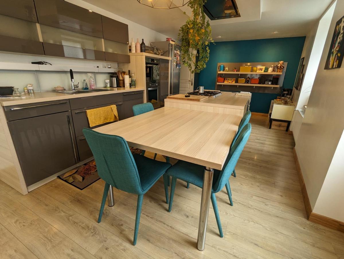 Ref 1155: CHERBOURG - SECTEUR PASTEUR - Maison rénovée avec goût disposant de 5 chambres, garage, terrasse et jardin, agencée sur 2 niveaux et offrant une surface habitable d'env. 200m2. - Au rez-de-chaussée : entrée distribuant un séjour-salon très cosy ouvert sur une belle cuisine dinatoire aménagée et équipée d'env. 52m2, buanderie, WC avec lave mains. - Au premier étage : un coin bureau ouvert sur une grande pièce de vie lumineuse actuellement à usage de coin détente avec sa terrasse en balcon et son coin télé, le tout d'env. 45m2, 1 chambre d'env. 12m2, salle de bains avec douche et baignoire, WC avec lave mains. - Au deuxième étage : quatre chambres (10,6m2; 11,5m2; 10,4m2; 11,5m2), salle d'eau avec WC. Garage, accès au jardin par portail électrique, terrasse plein Sud d'env. 20m2 Pas de travaux à prévoir ! Retrouvez toutes nos annonces sur www.etudenapoleon.notaires.fr Les informations sur les risques auxquels ce bien est exposé sont disponibles sur le site Géorisques : www. georisques. gouv. fr