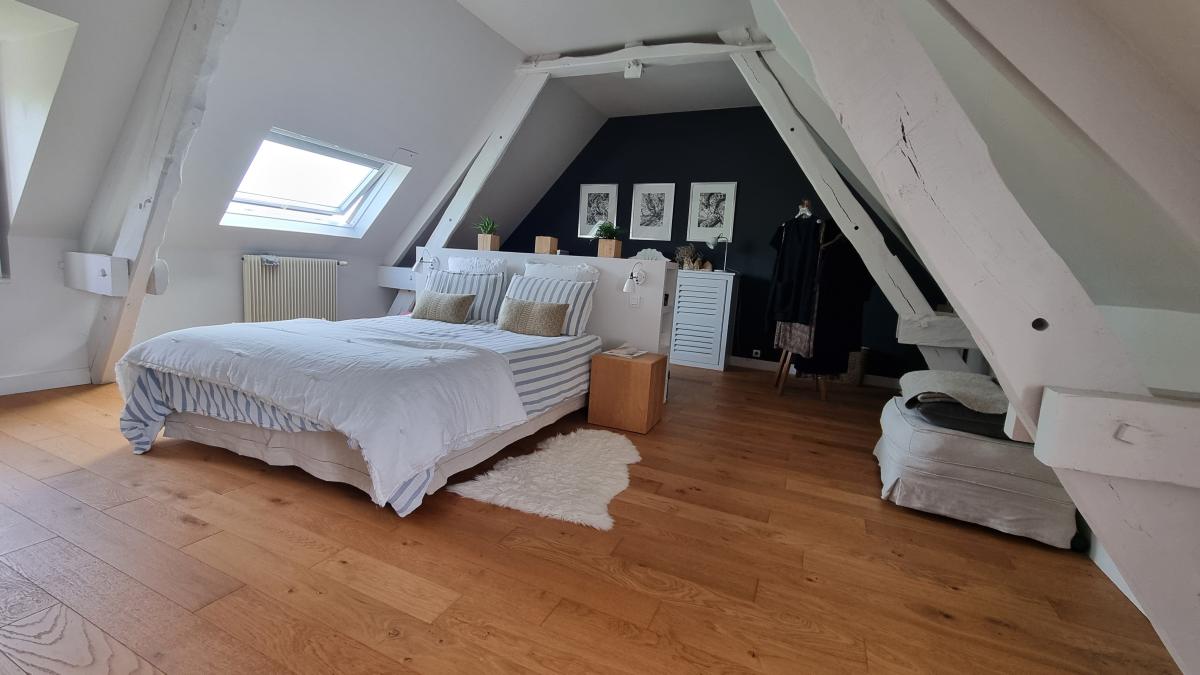 Au 2e étage : palier desservant une grande mezzanine, une salle d'eau, une grande chambre.