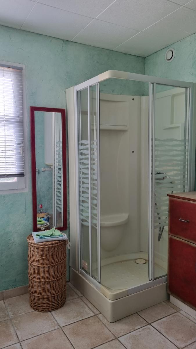 Une autre entrée indépendante dans une cuisine séjour/salon, salle d'eau, wc, au-dessus une mezzanine à office de chambre.