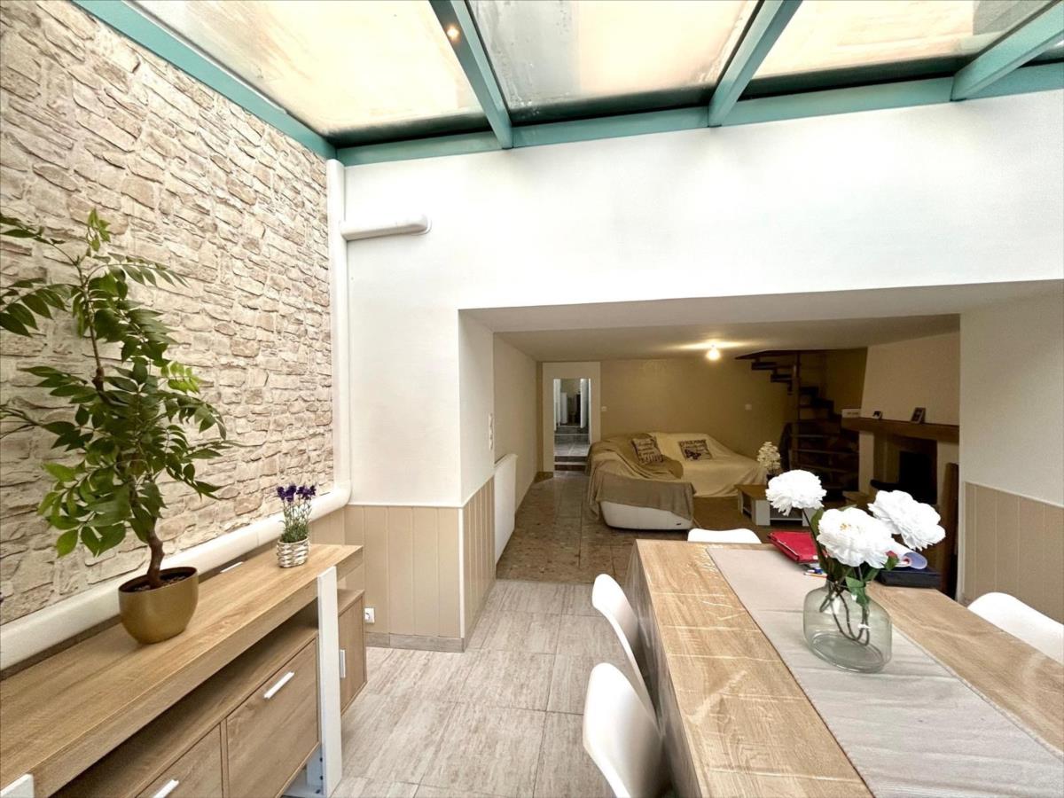 Au-rez-de-chaussée: : entrée, véranda ouvrant sur une cour, pièce à vivre avec cheminée, cuisine aménagée et équipée (neuve), salle d'eau avec WC, espace buanderie . Au premier étage: pièce palière distribuant deux jolies chambres , un cabinet de toilette avec WC et lavabo. Rangement . Au deuxième étage , sous combles: chambre .