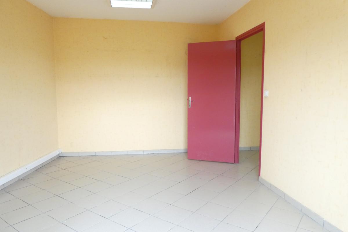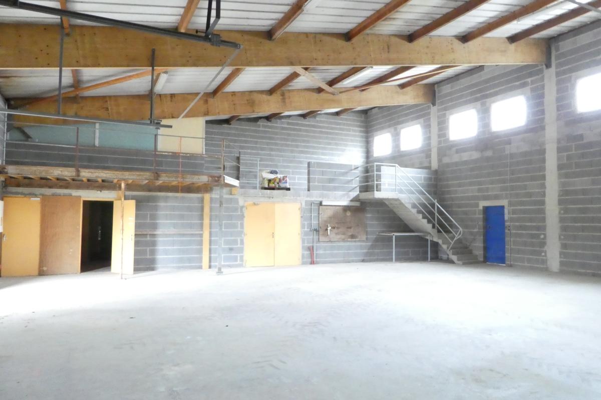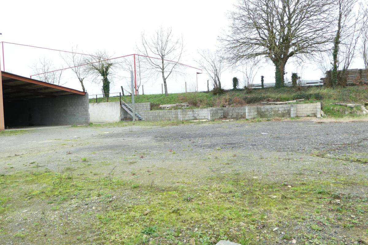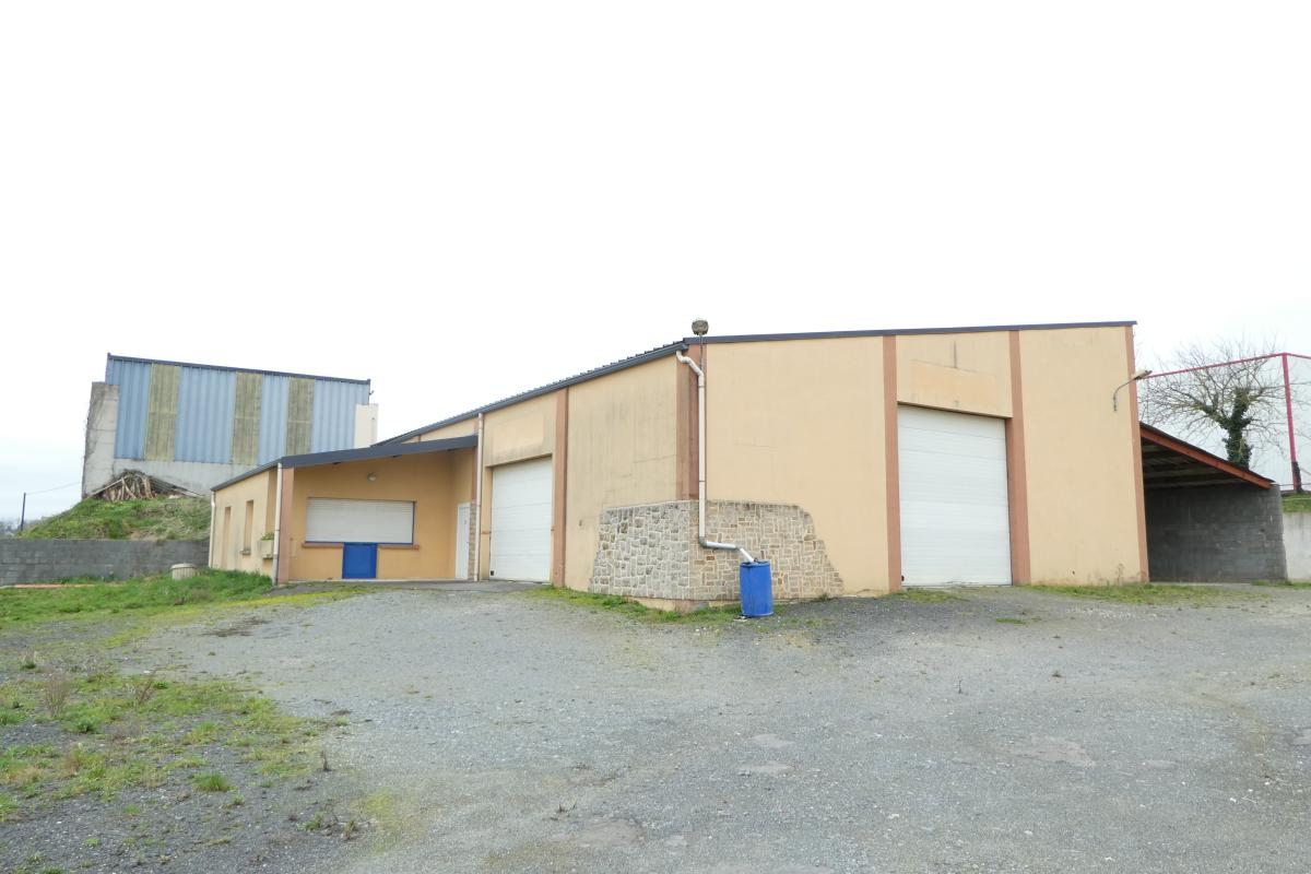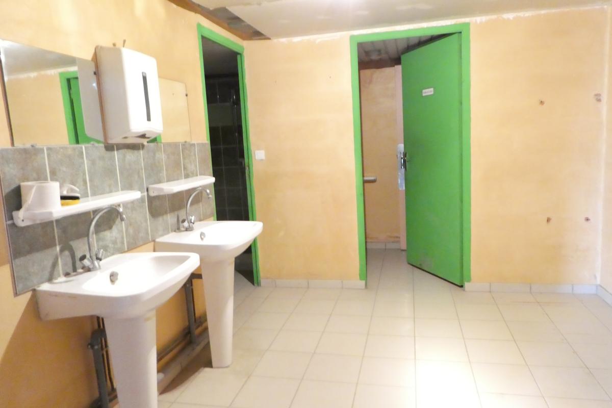 Bâtiment comprenant : espace accueil, bureau avec accès jardin et bassin à poissons, espace sanitaire avec deux wc, douches et vestiaires, remise, atelier et plateforme en hauteur, avec de portes de garage.