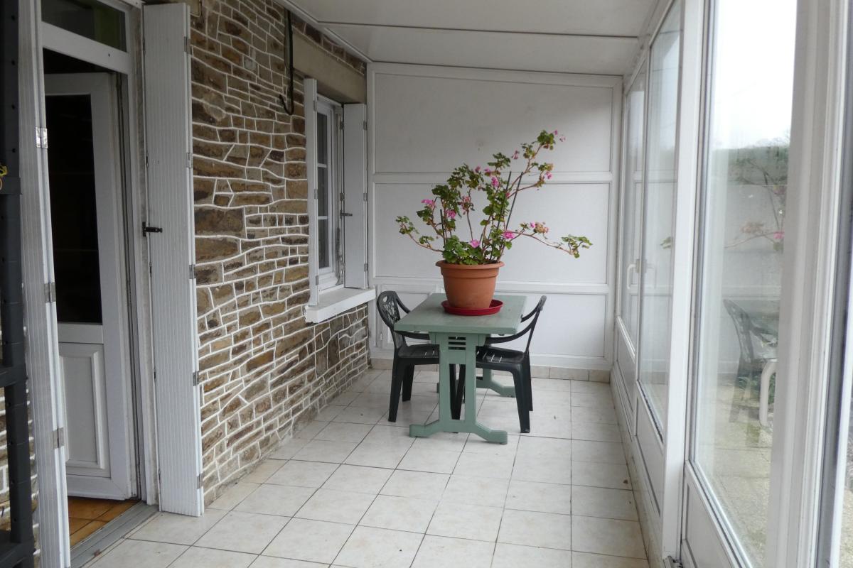 Au rez-de-chaussée : pièce de vie avec poêle à pellets, véranda, cuisine, salle d'eau avec wc, cellier