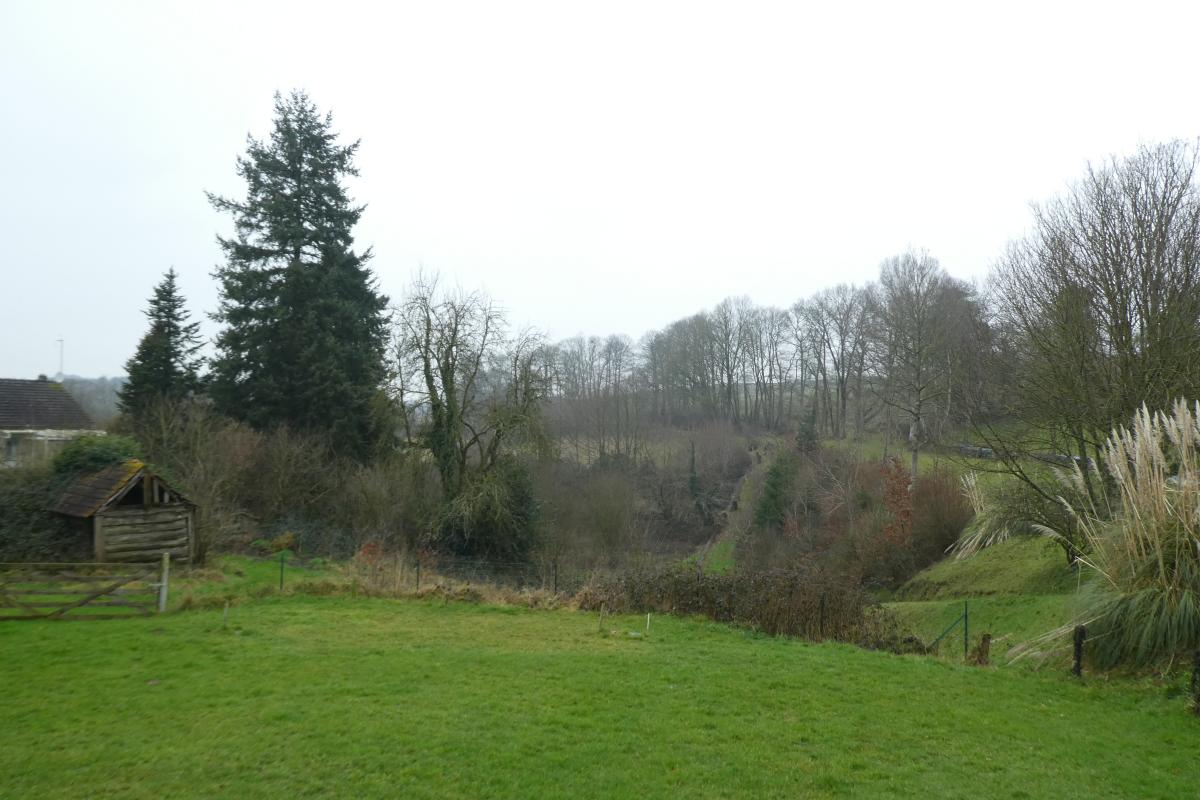 Jardin devant, cour close et bitumée, jardinet derrière, garage d'environ 35m²