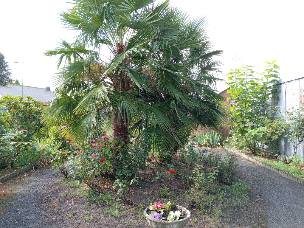 Beau jardin avec cour gravillonnée, garage d'environ 40m².