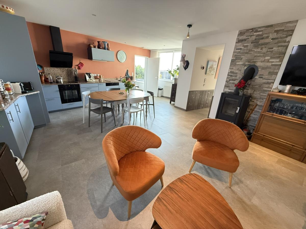 - Entrée avec placard, séjour avec poêle à bois et cuisine ouverte équipée, trois chambres, deux salles d'eau avec douches à l'italienne et WC, grande buanderie (possibilité de garage) avec grenier au dessus.