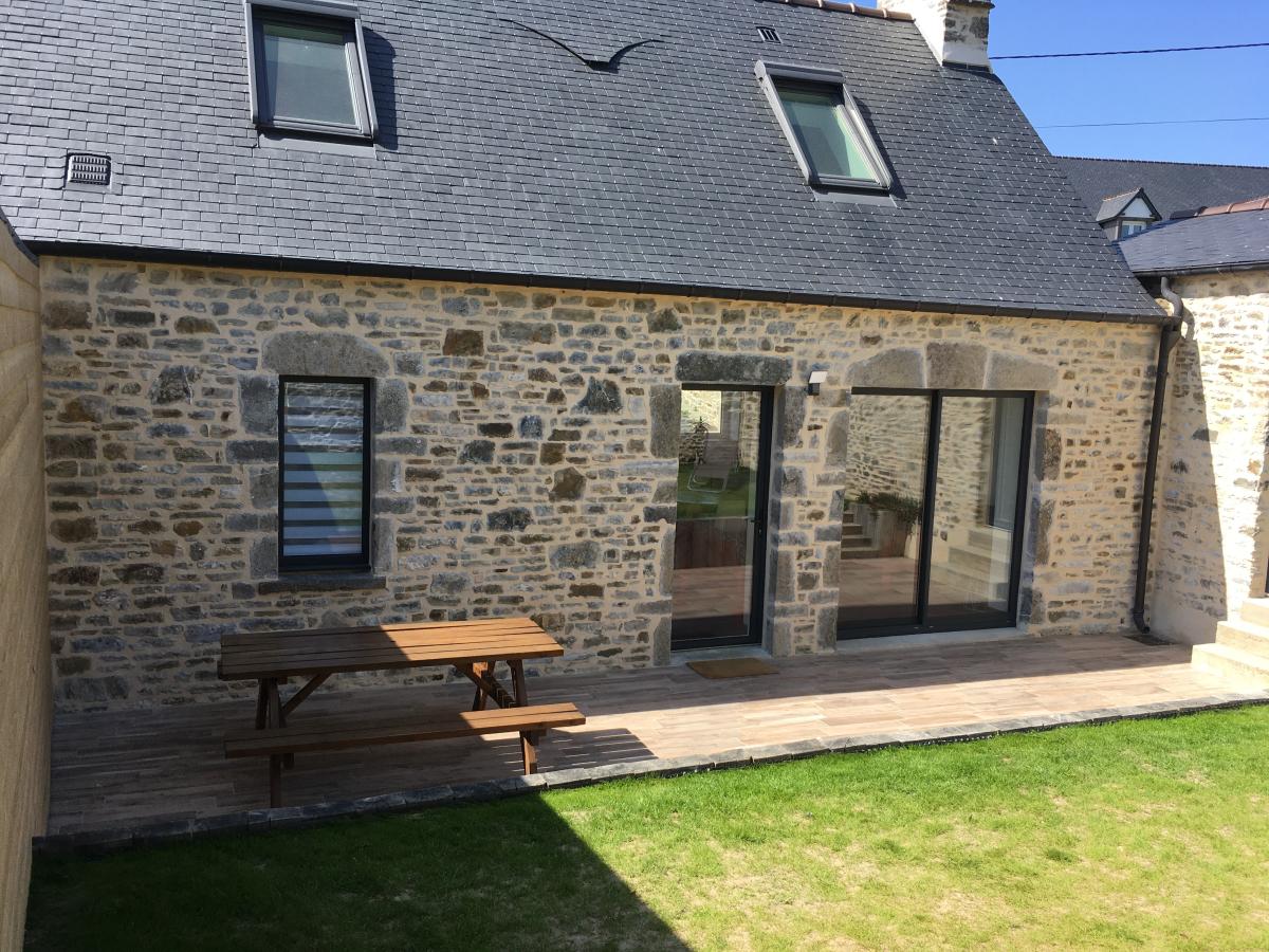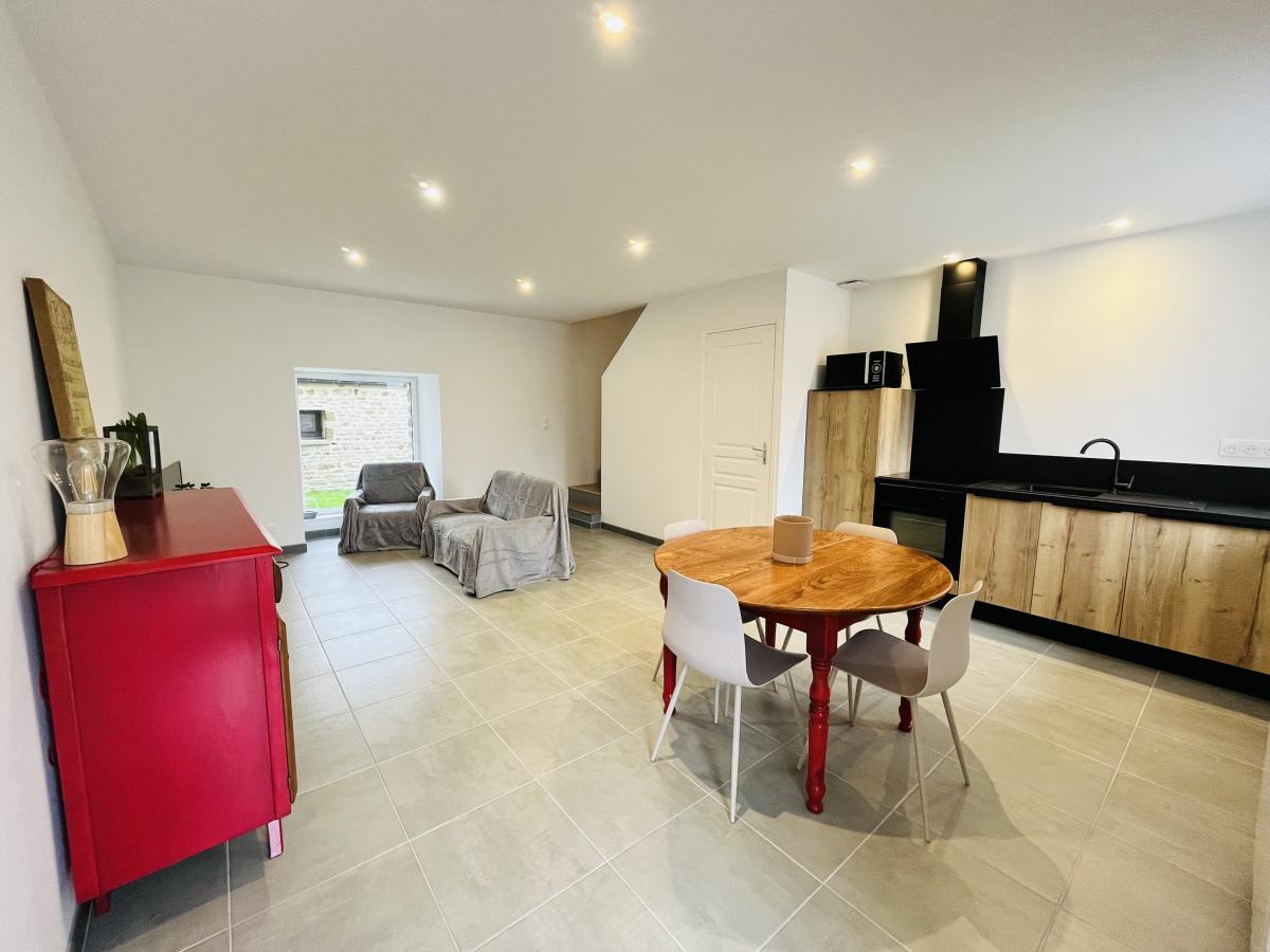 2°) Une seconde maison de 150 m² comprenant: grand séjour avec cuisine ouverte équipée + ilot central et poêle à granulés, dégagement, buanderie, WC. Au premier étage : palier, salle de bains, WC, trois chambres. Au deuxième étage : suite parentale comprenant chambre, espace bureau, salle d’eau avec WC et dressing. Cour devant et jardin derrière avec terrasse.