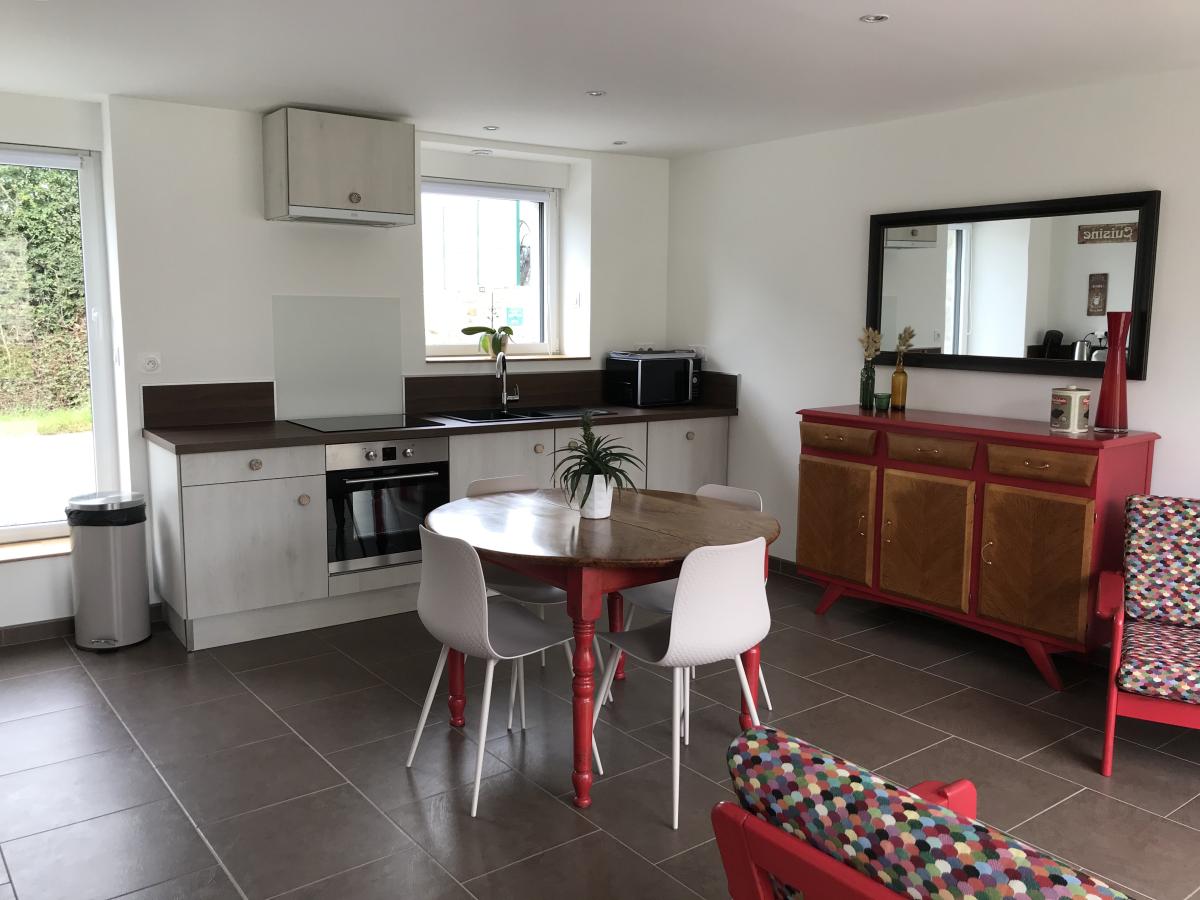 4°) Dernier logement non mitoyen de 82 m² comprenant: entrée avec placard, séjour avec cuisine ouverte équipée, WC, salle d’eau. A l’étage : palier, deux chambres. Garage avec évier, petit jardin clos de murs sur l’arrière avec terrasse carrelée.