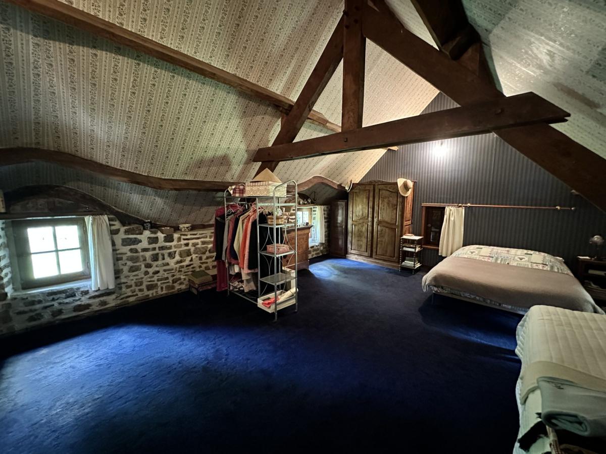 - A l'étage: très grande chambre avec salle d'eau et WC privatifs, et par un second escalier une chambre en mezzanine donnant accès à une autre grande chambre.