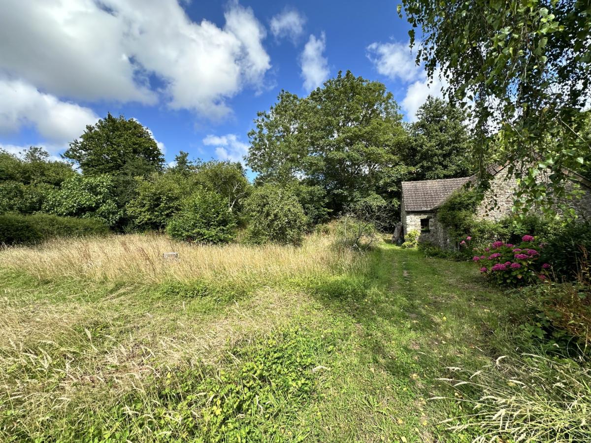 Jardin bordé d'une rivière, planté et arboré avec terrasse et dépendance comprenant une buanderie avec grenier au dessus et un garage.