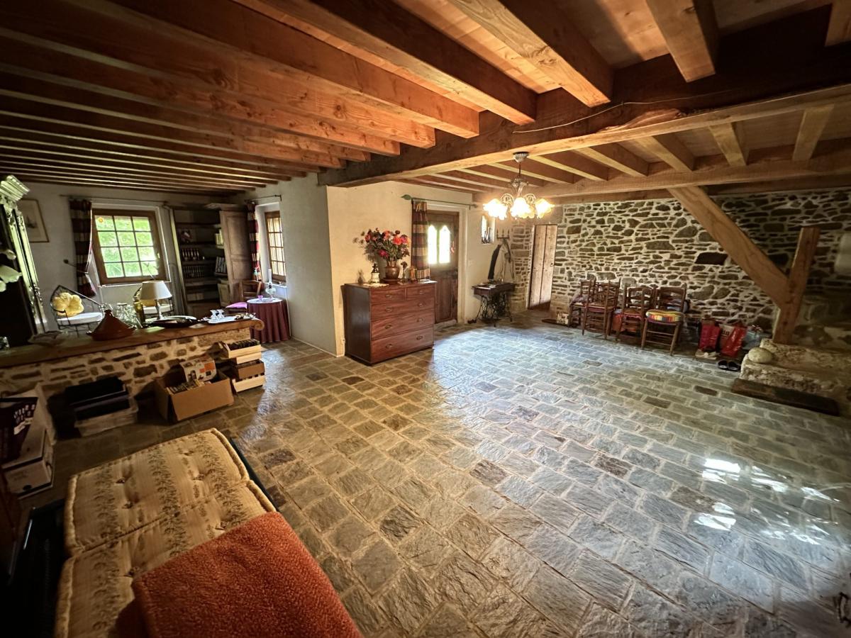 - Au rez de chaussée: cuisine équipée, salle de bains avec WC, salon avec cheminée, grand séjour 50 m².