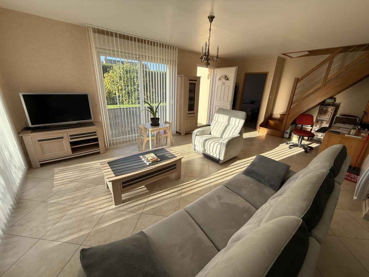 - Au rez de chaussée: vaste séjour avec cuisine ouverte équipée, arrière-cuisine, une chambre avec placards et salle d'eau privative avec WC.