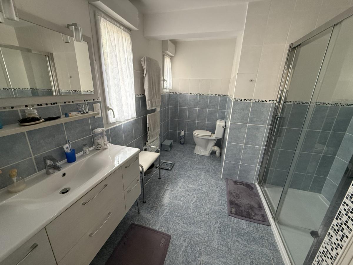 - A l'étage: palier, WC, deux grandes chambres dont une avec salle d'eau privative.