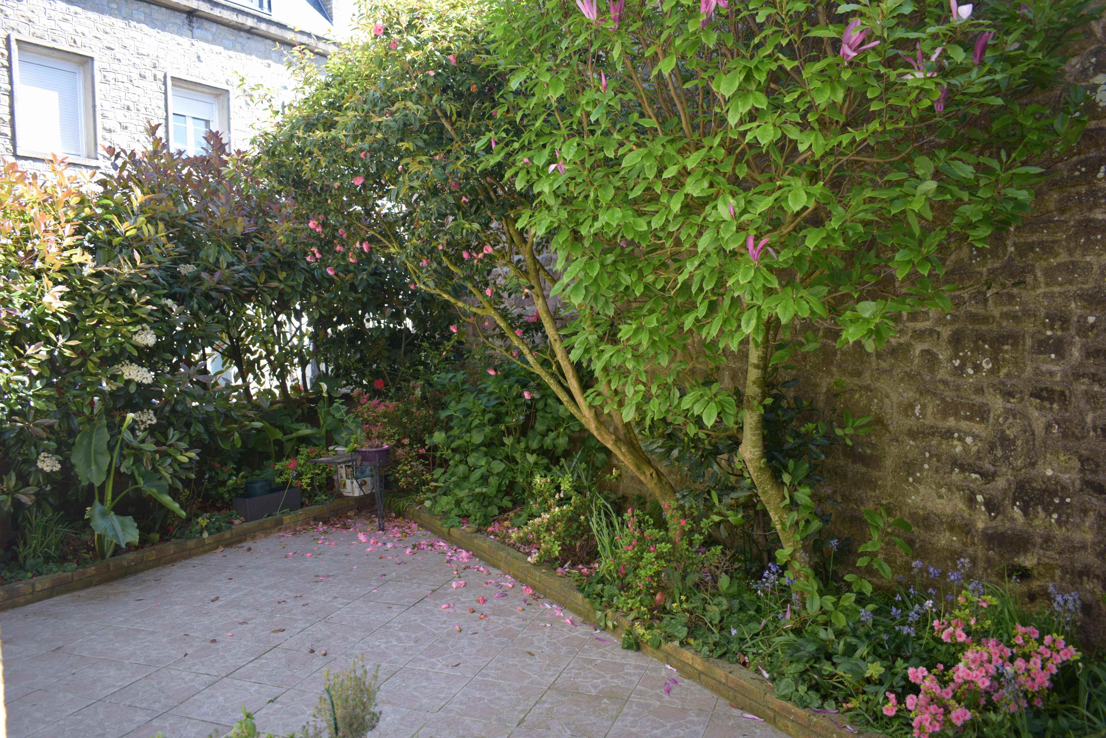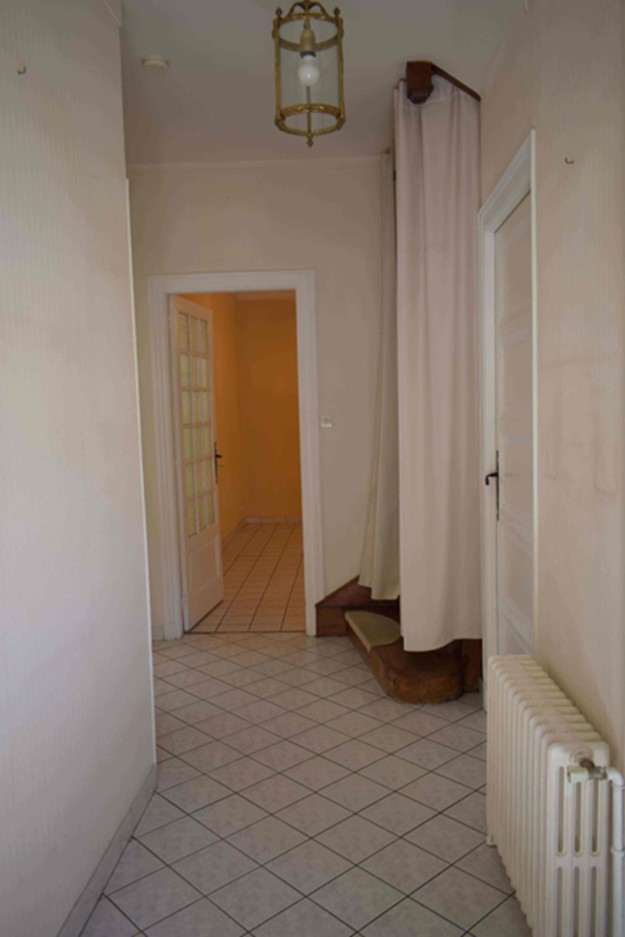 Au rez-de-chaussée : entrée, pièce avec WC, cuisine aménagée avec placard donnant sur cour, salon, salle à manger ;