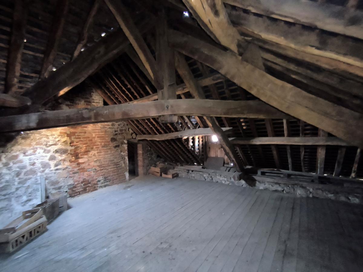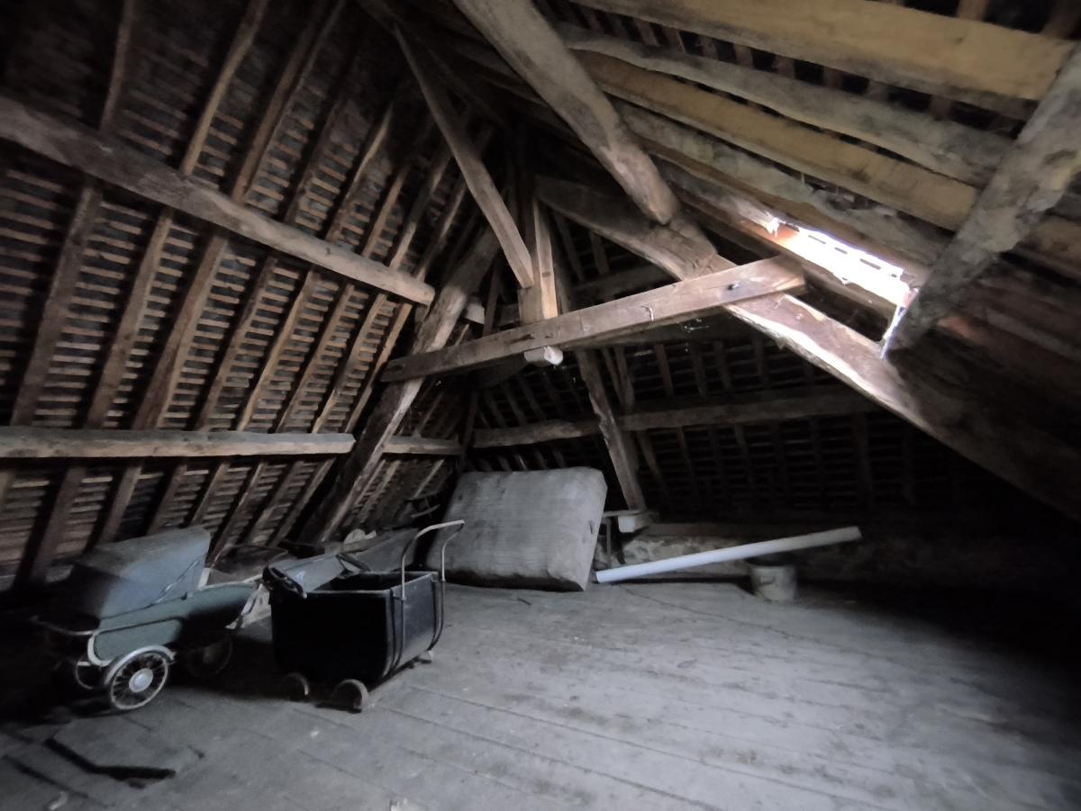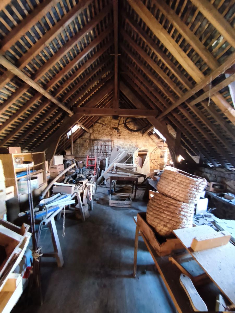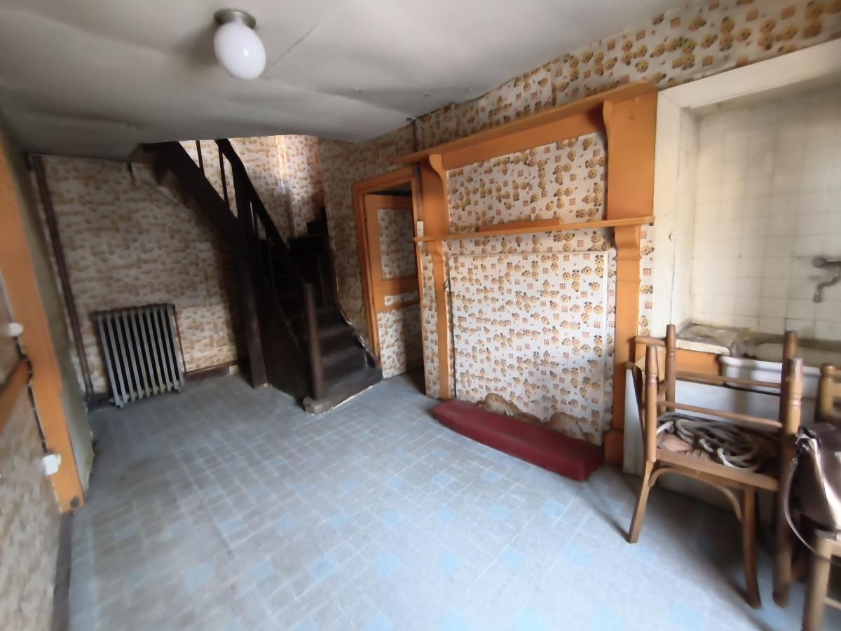 Maison de bourg de 5 pièces principales avec dépendances sur env. 600 m² de terrain. Le rez-de-chaussée est composée d'une pièce à usage d'entrée, un salon, une cuisine, une cave avec sanitaires. Au 1er étage : 2 chambres et une pièce. Au 2ème étage : 2 greniers. En dépendance : ancienne forge d'une pièce avec grenier au dessus, 2 garages ouverts avec buanderie attenante. Cour et jardin, l'ensemble sur env. 600 m² de terrain. Chauffage central fioul. DPE : F