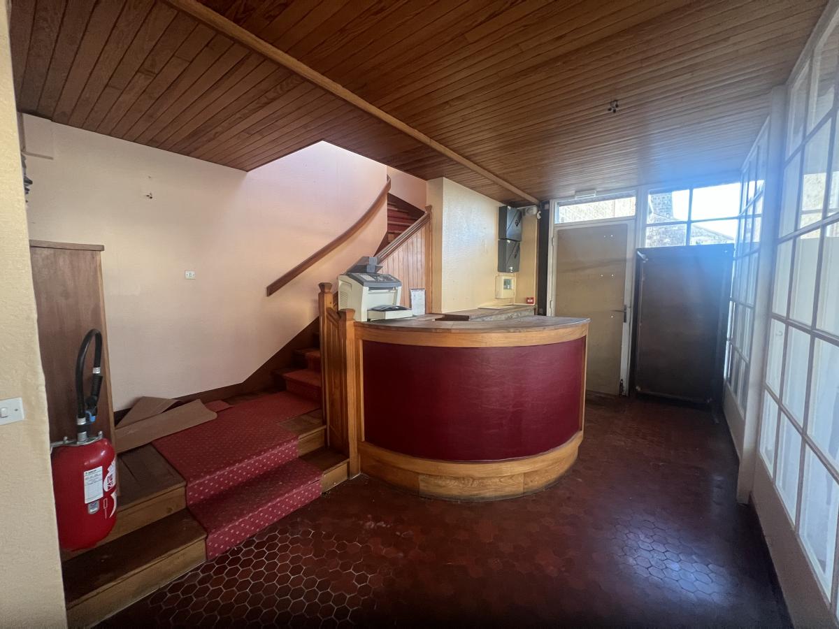 LA FERTE MACE en centre ville : ancien hôtel-restaurant (vendu sans fonds de commerce et sans licence) comprenant au RDC bar, bureau, cuisine, chambre froide, séjour avec cheminée, réception donnant sur terrasse, salle de restaurant, salle de réception, réserve, buanderie, lingerie, WC. Au sous-sol : sanitaires (3 WC et lavabos), cave à vin, chaufferie et réserve. A l 'étage (s'y accédant par 2 escaliers) : couloir desservant six chambres avec salle de bains et WC privatifs, appartement privé de 2 chambres, bureau et SDB, 2 pièces au-dessus de la lingerie. Vaste parking. Dépendance à usage de grange et hangar. Situation idéale pour activité commerciale type restauration, location de salles/chambres ou création de logements d'habitation. Terrain de 3900 m².