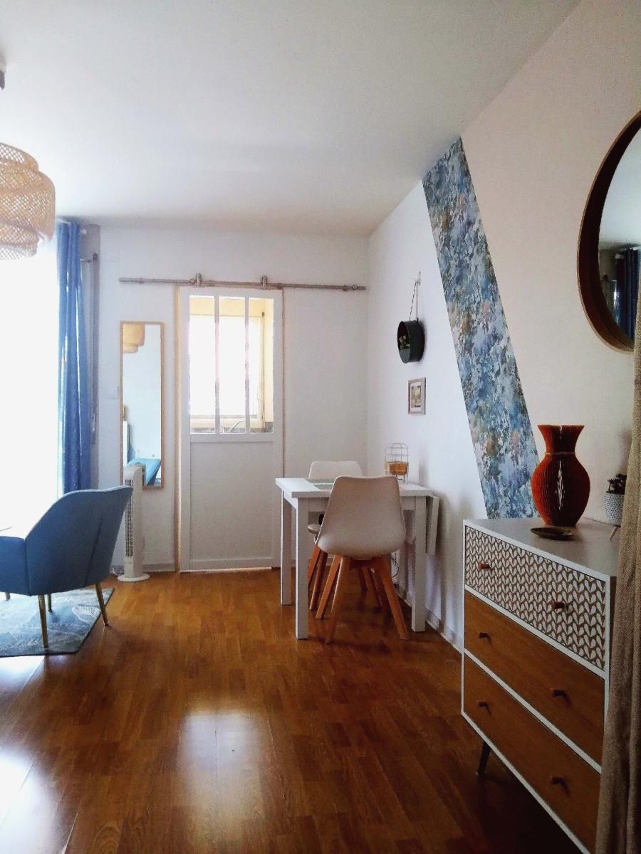 L'appartement est au 1er étage avec ascenseur et dispose d'un balcon, très fonctionnel il comprend : entrée/placard, pièce de vie/chambre, cuisine aménagée et équipée séparée, salle d'eau (douche italienne) avec WC.