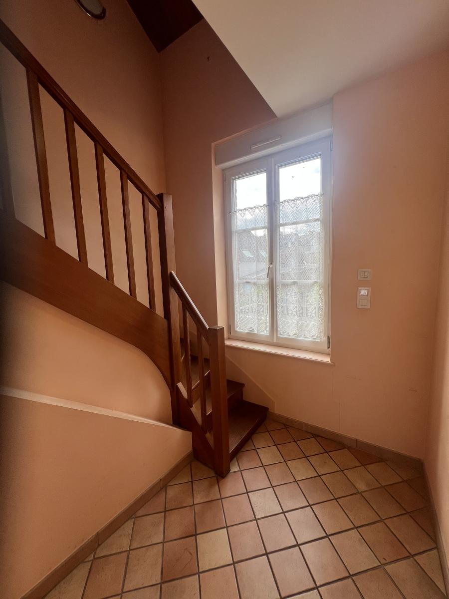 Au coeur de la ville de LA FERTE MACE, maison comprenant : . Au RDC : entrée, bureau, buanderie, WC, cave ; . Au 1er étage : séjour avec cheminée, cuisine ; . Au 2ème étage : 2 chambres, salle d'eau, WC. Chauffage électrique, fenêtres PVC. 2è étage à rénover complètement. Jardin de 300 m² avec abri à usage d'atelier.