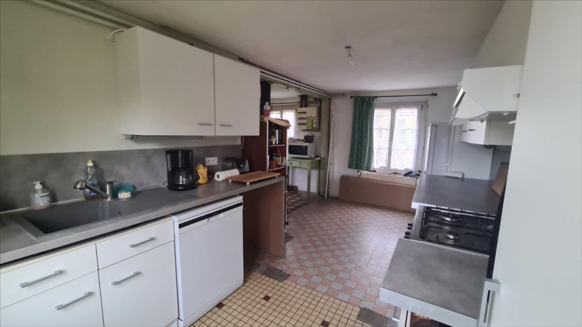 En sortie de petite ville avec commerces, dans un quartier au calme,  maison comprenant : cuisine aménagée, séjour avec poêle à bois, dégagement, deux chambres, salle de douche avec douche à l'italienne, wc séparés ; à l'étage : petit palier desservant deux chambres mansardées et wc broyeur avec lave-mains. Belles dépendances en brique et pierre; garage. Les informations sur les risques auxquels ce bien est exposé sont disponibles sur le site Géorisques : www. georisques. gouv. fr