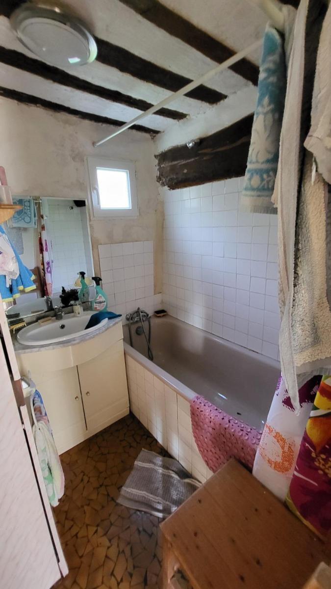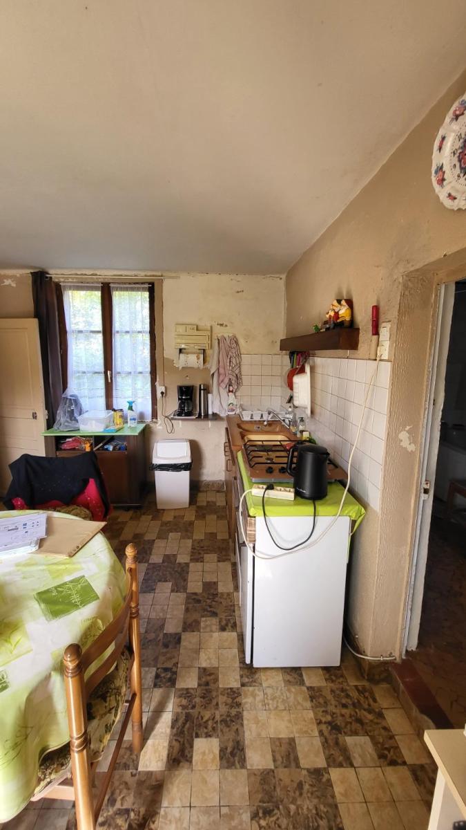 En campagne avec vue dégagée, maison en brique à rénover comprenant entrée avec escalier, cuisine, séjour, salle d'eau, wc; au 1er étage : deux chambres; au 2ème étage : grenier aménageable; dépendance attenante en colombage à usage de cellier et atelier, l'ensemble sur 1175 m². Les informations sur les risques auxquels ce bien est exposé sont disponibles sur le site Géorisques : www. georisques. gouv. fr