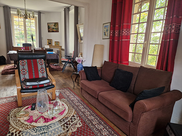 - Séjour-salon (30 m²) avec parquet et quatre fenêtres en double vitrage, baignant la pièce de lumière.