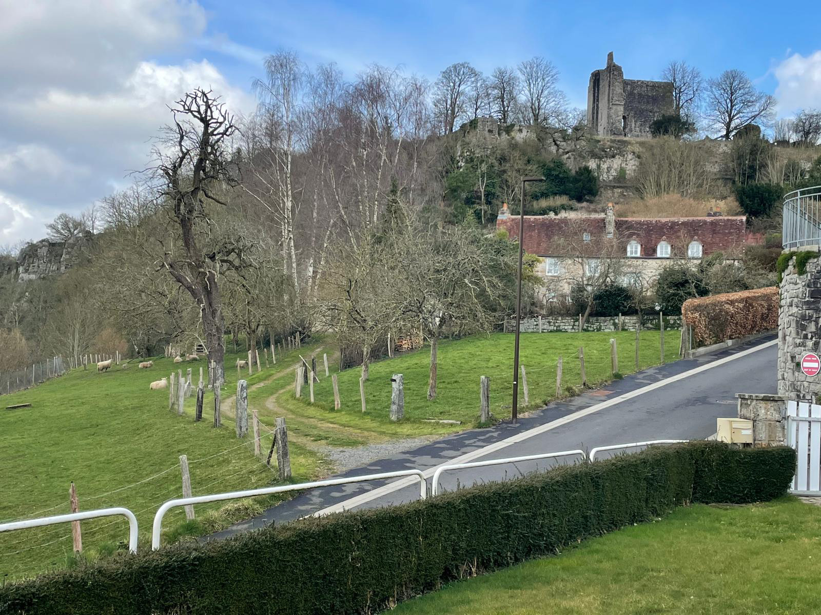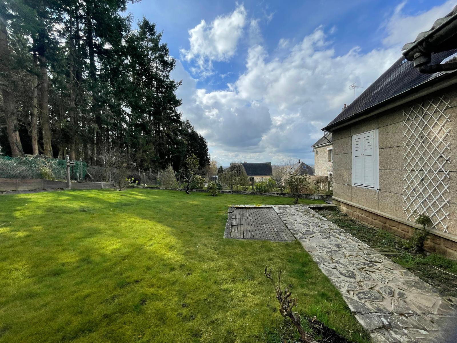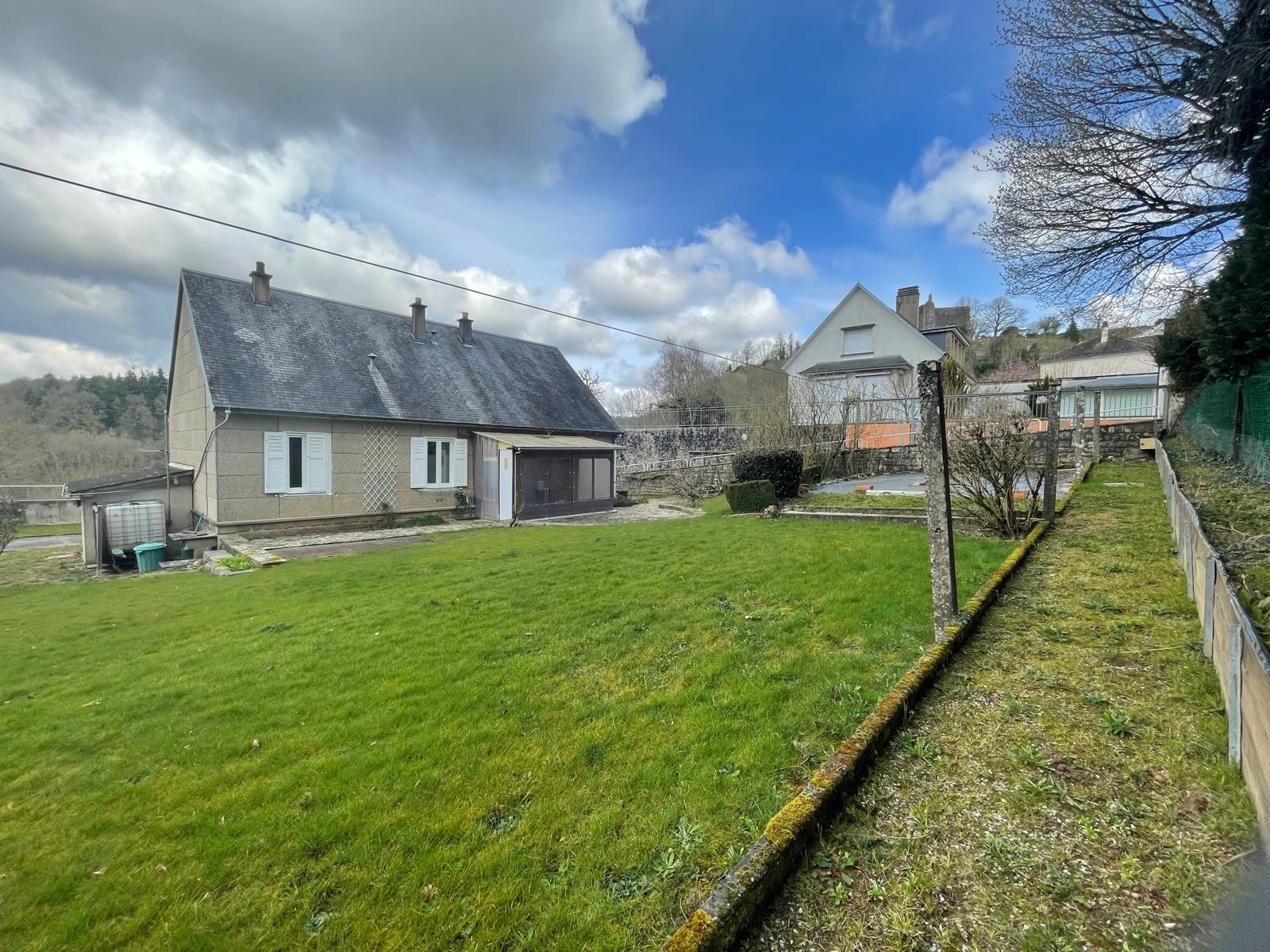 À Domfront-en-Poiraie (61700), ce pavillon d’habitation repose sur un soubassement en pierre et est couvert d’une toiture en ardoises, typique de l’architecture locale.