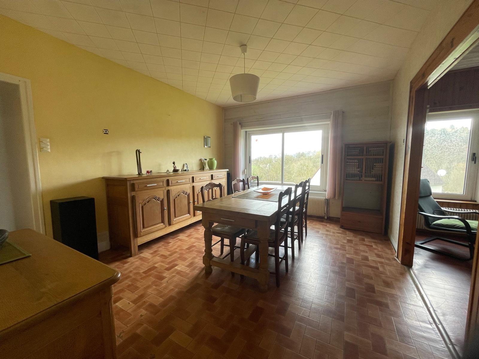 En façade, un garage en maçonnerie, situé au niveau de la rue, surmonté d’une terrasse en ciment, complète l’ensemble bâti.