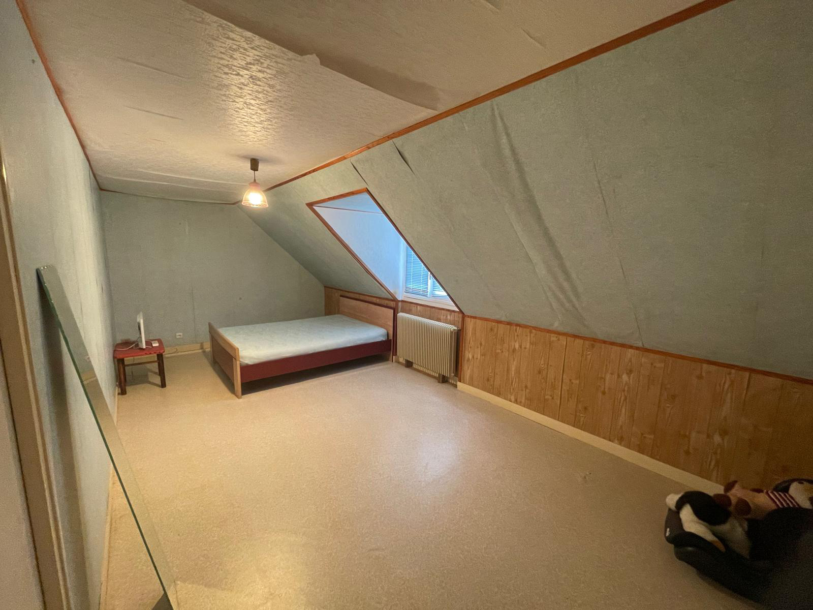 À l’étage, le niveau mansardé se compose de deux chambres de 17,3 m² et 12,4 m², auxquelles s’ajoute un espace débarras.