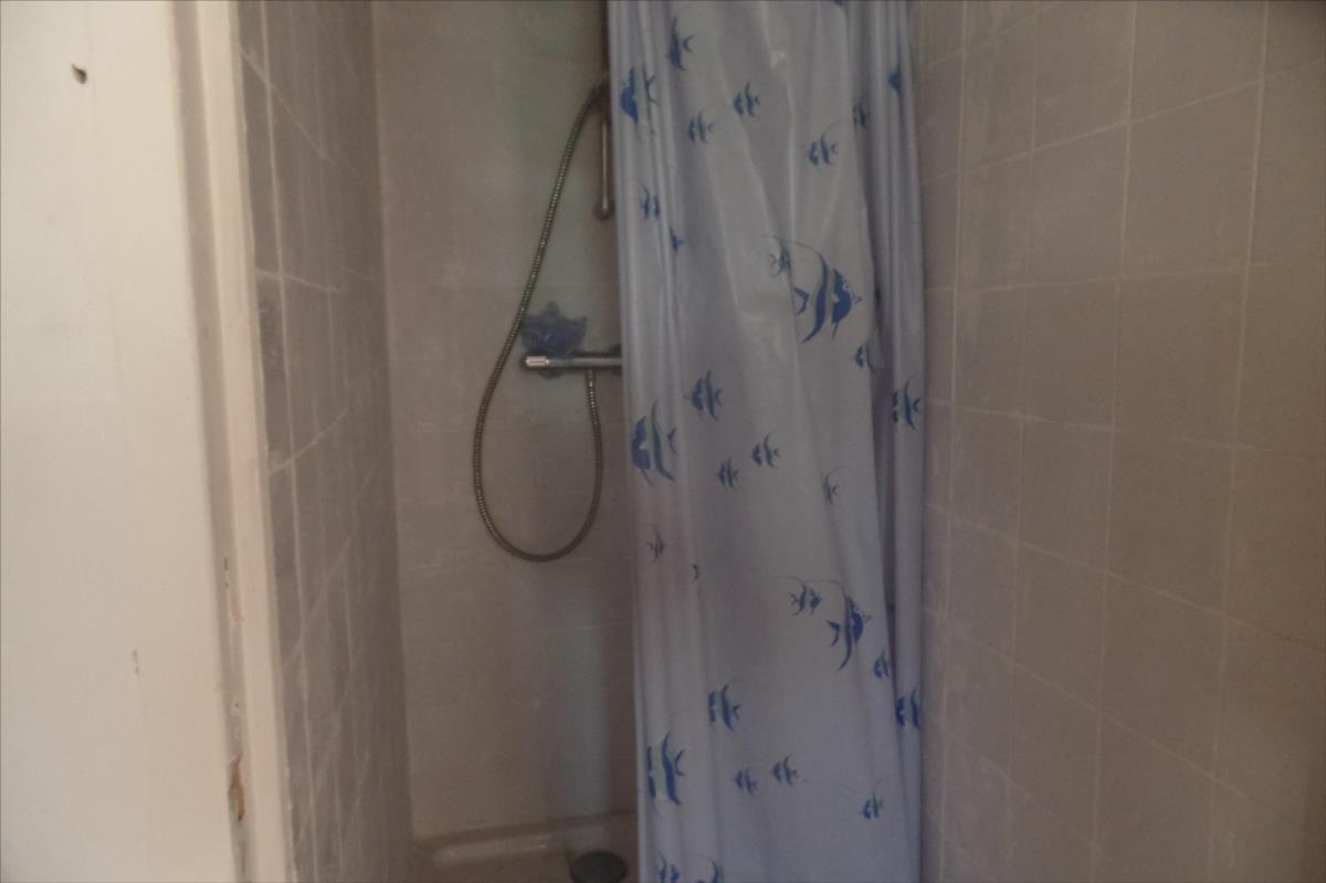 rez-de-chaussée : entrée sur pièce de vie avec coin cuisine, douche, wc avec