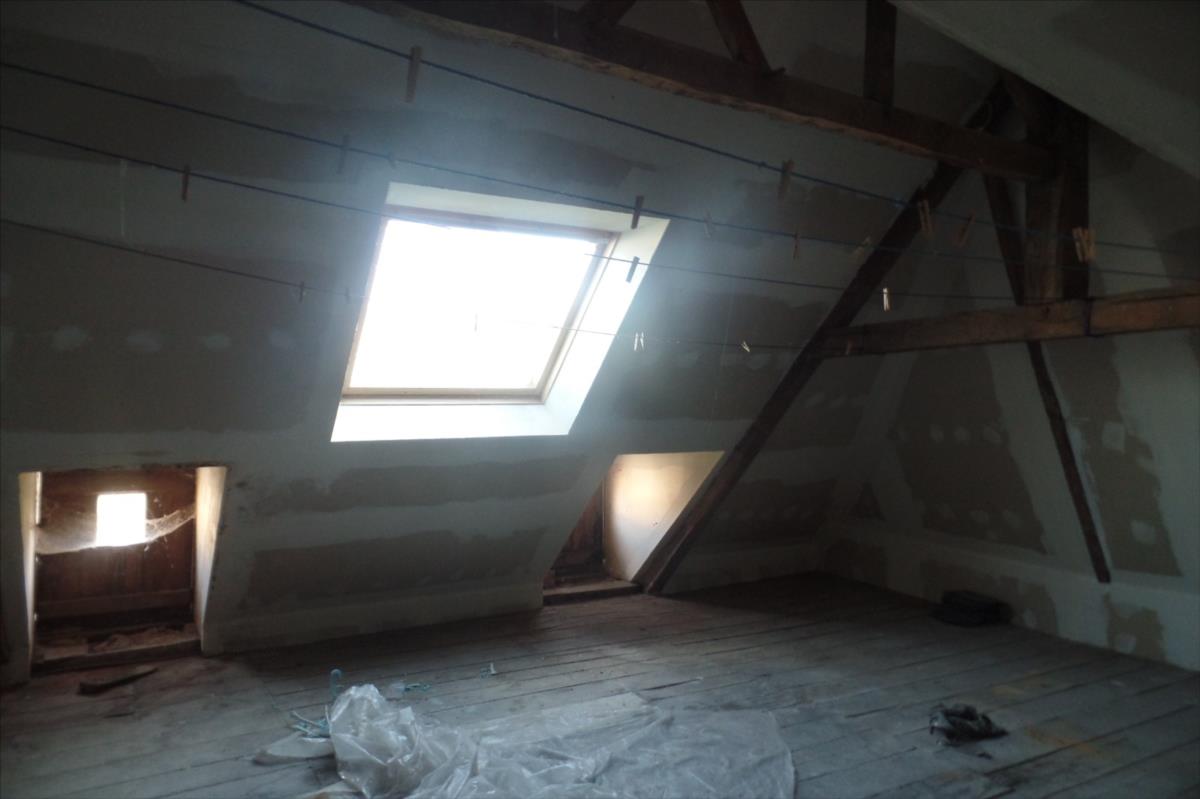 l’étage : une chambre, salle d'eau avec wc et grenier.