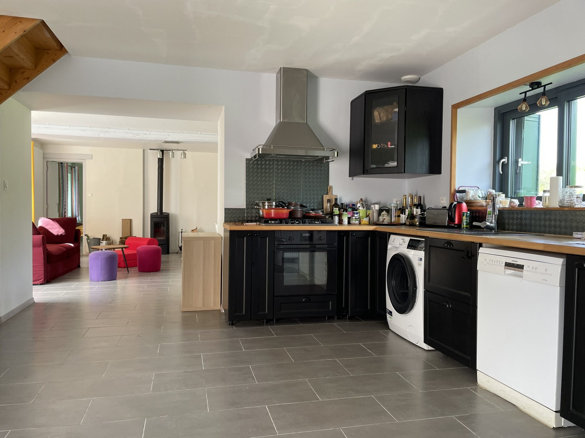 Secteur MORTAGNE AU PERCHE, maison rénovée sur 9400 m² de terrain. Bel espace de vie avec grande cuisine aménagée et séjour/salon avec poêle à bois, 4 chambres (dont une en rez-de-chaussée avec salle de bains) et salle d'eau/WC. Chauffage gaz et pompe à chaleur. Dépendance à la suite. Ancien fournir. Cour, jardin et prairie.