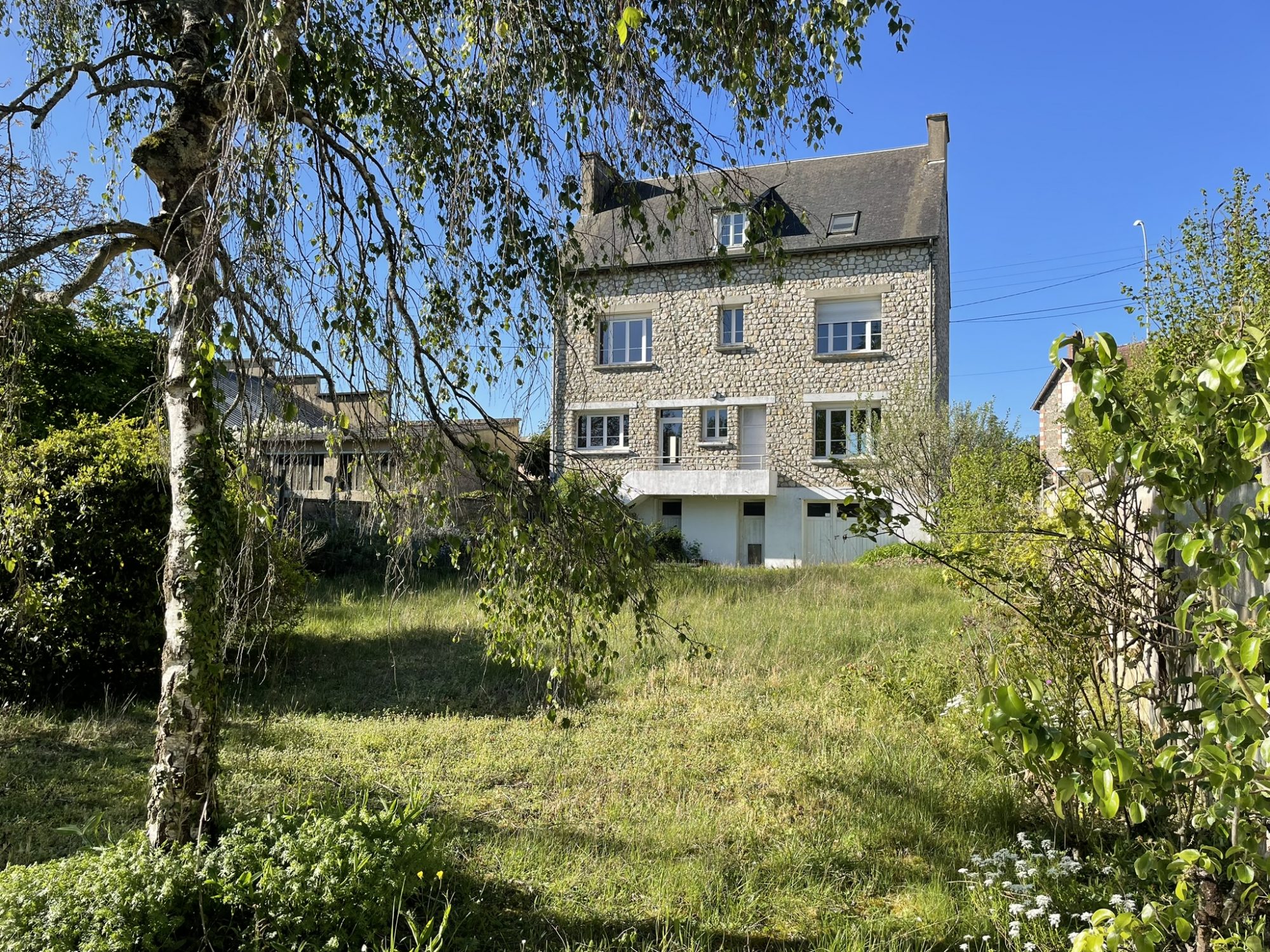 Une maison avec jardin au pied du CENTRE-VILLE de MORTAGNE AU PERCHE. Au rez-de-chaussée : entrée, séjour avec cheminée, cuisine aménagée ouverte sur salle à manger et WC. A l'étage, sur deux niveaux : 5 chambres, salle d'eau/WC, salle de bains/WC, cabinet de toilette et grenier. Sous-sol avec atelier, buanderie et cave. Jardin sur l'arrière.