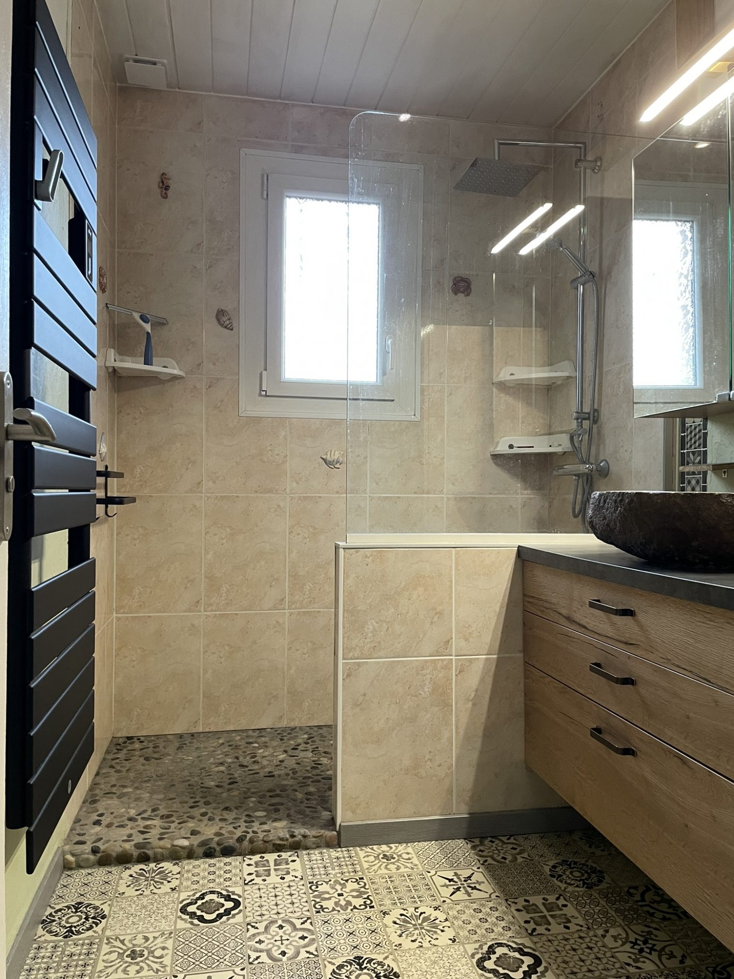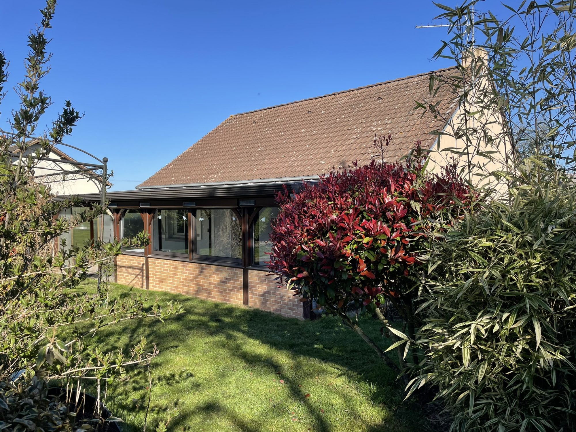 A 10 minutes de L'AIGLE, dans un village avec premiers commerces et école, charmante maison sur sous-sol dans un environnement calme. De plain-pied : entrée, bel espace de vie (57 m²) avec cuisine aménagée et équipée ouverte sur séjour avec insert à pellet et lumineuse véranda, deux chambres, salle d'eau, WC. Au sous-sol : garage, atelier, buanderie et cave. Abri voiture. Le tout sur un terrain clos et arboré d'environ 900 m².