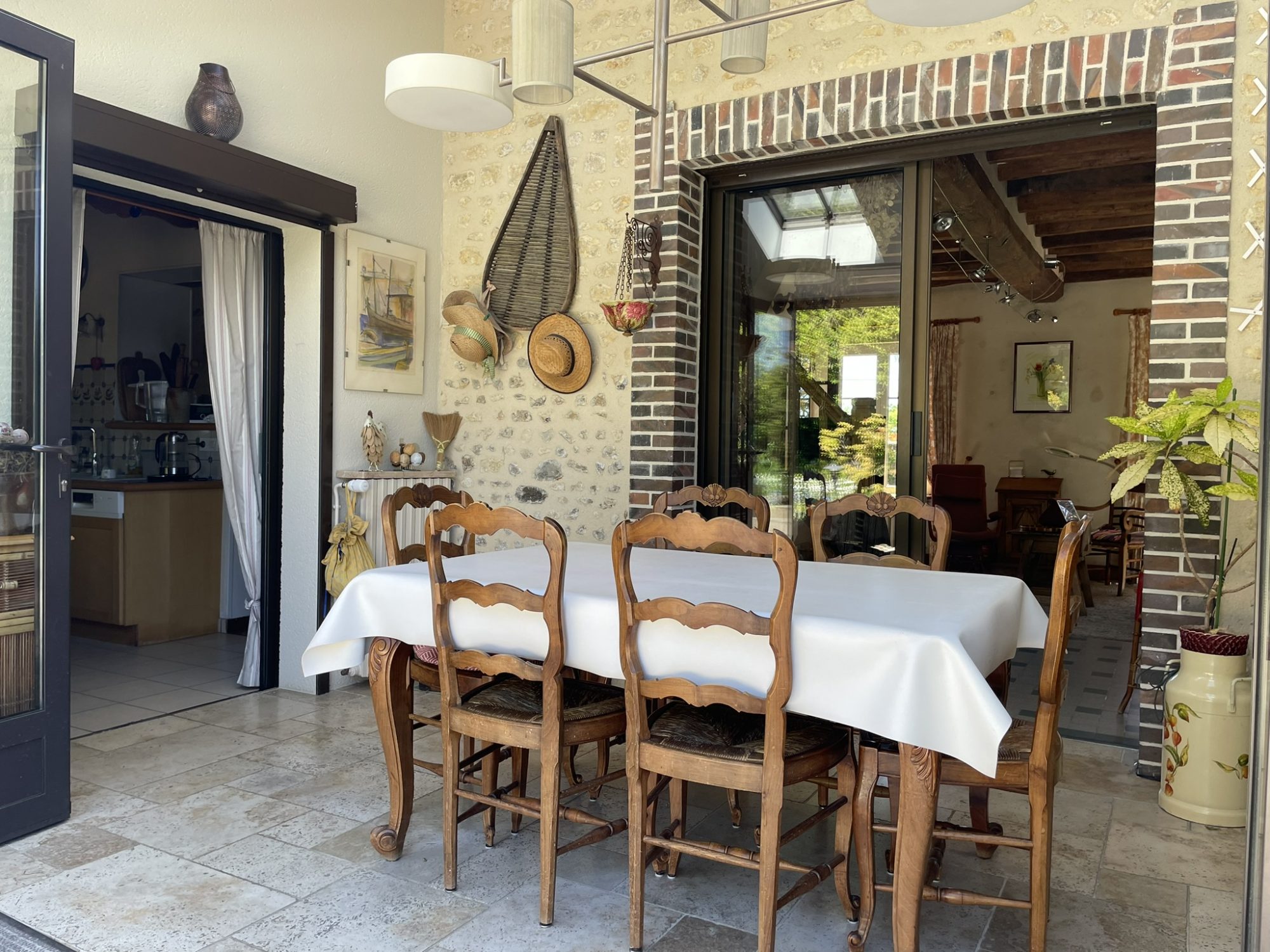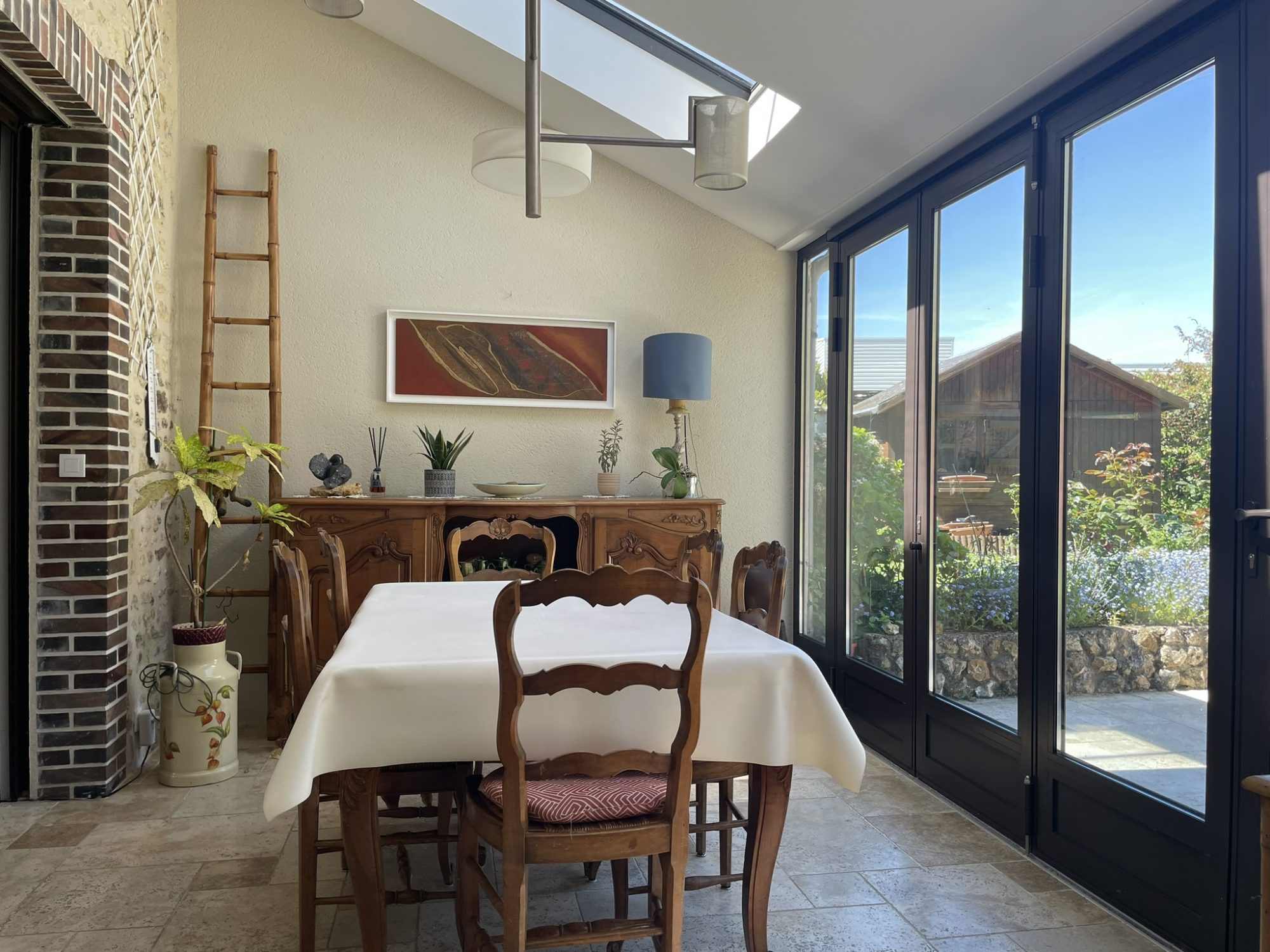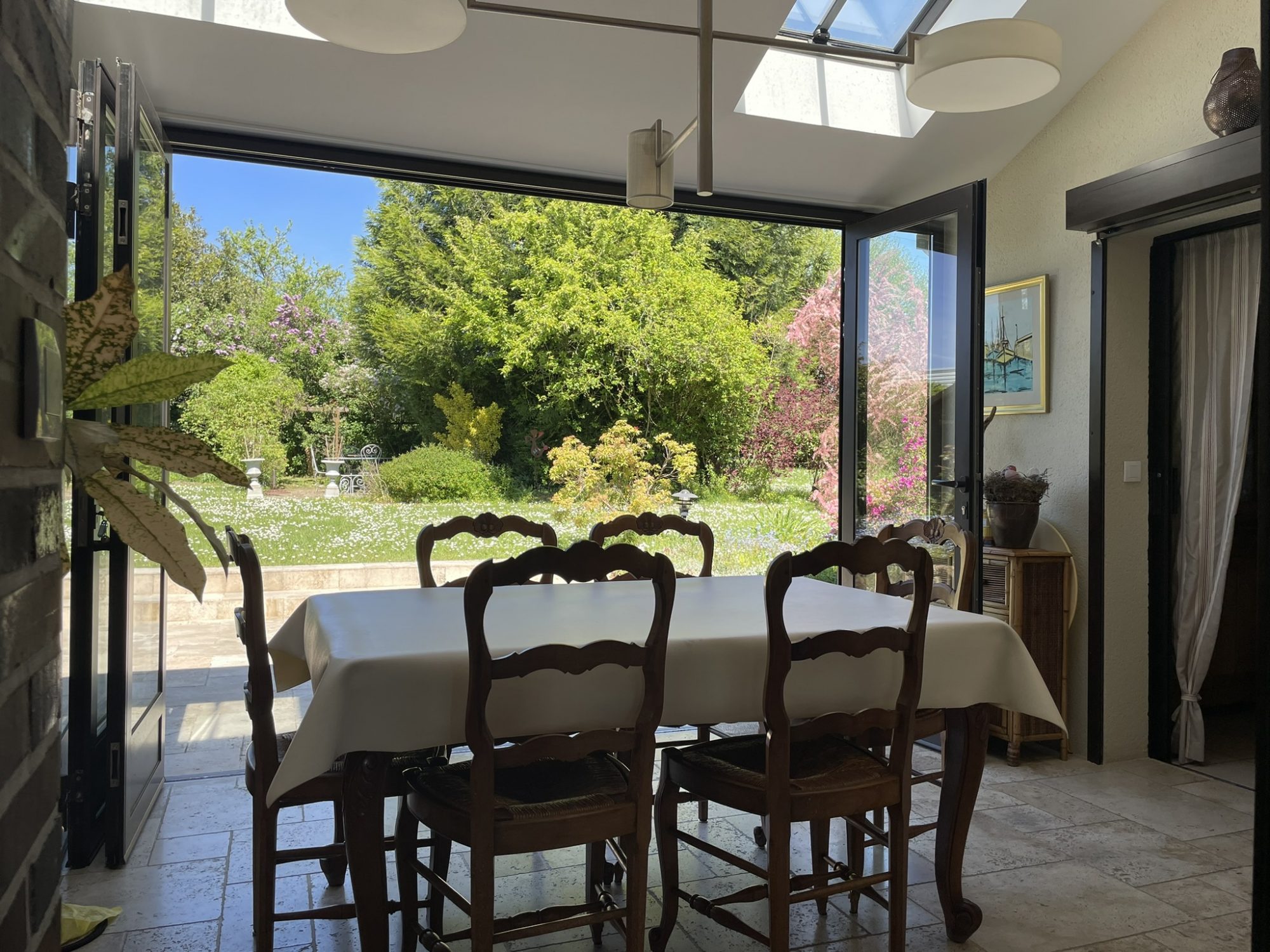 A 15 minutes au NORD DE MORTAGNE AU PERCHE dans un village avec les premiers commerces et services, maison sur son terrain arboré de 2900 m². Au rez-de-chaussée : entrée, salle à manger avec cheminée, salon, véranda ouvrant sur une terrasse, cuisine aménagée, une chambre avec dressing, salle de bains avec douche, WC, ainsi qu’une chaufferie/buanderie et une cave/cellier. A l'étage : palier avec espace bureau, deux chambres, dressing, salle d'eau avec WC. Une verrière mène à une 4ᵉ chambre indépendante, avec sa propre salle d’eau et son WC. Garage/atelier attenant, bucher et abri de jardin. Autre terrain situé juste en face de 1500 m². L’ensemble séduit par son charme et son très bon état d’entretien.