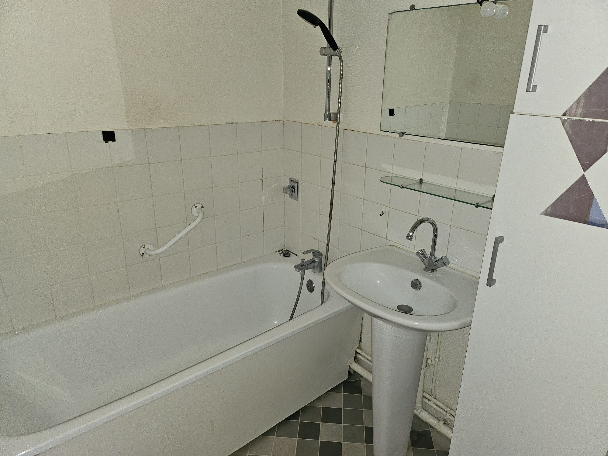 Un APPARTEMENT avec ascenseur situé au deuxième étage comprenant : entrée, dégagement, salle de bains avec wc, cuisine, une chambre, un séjour.