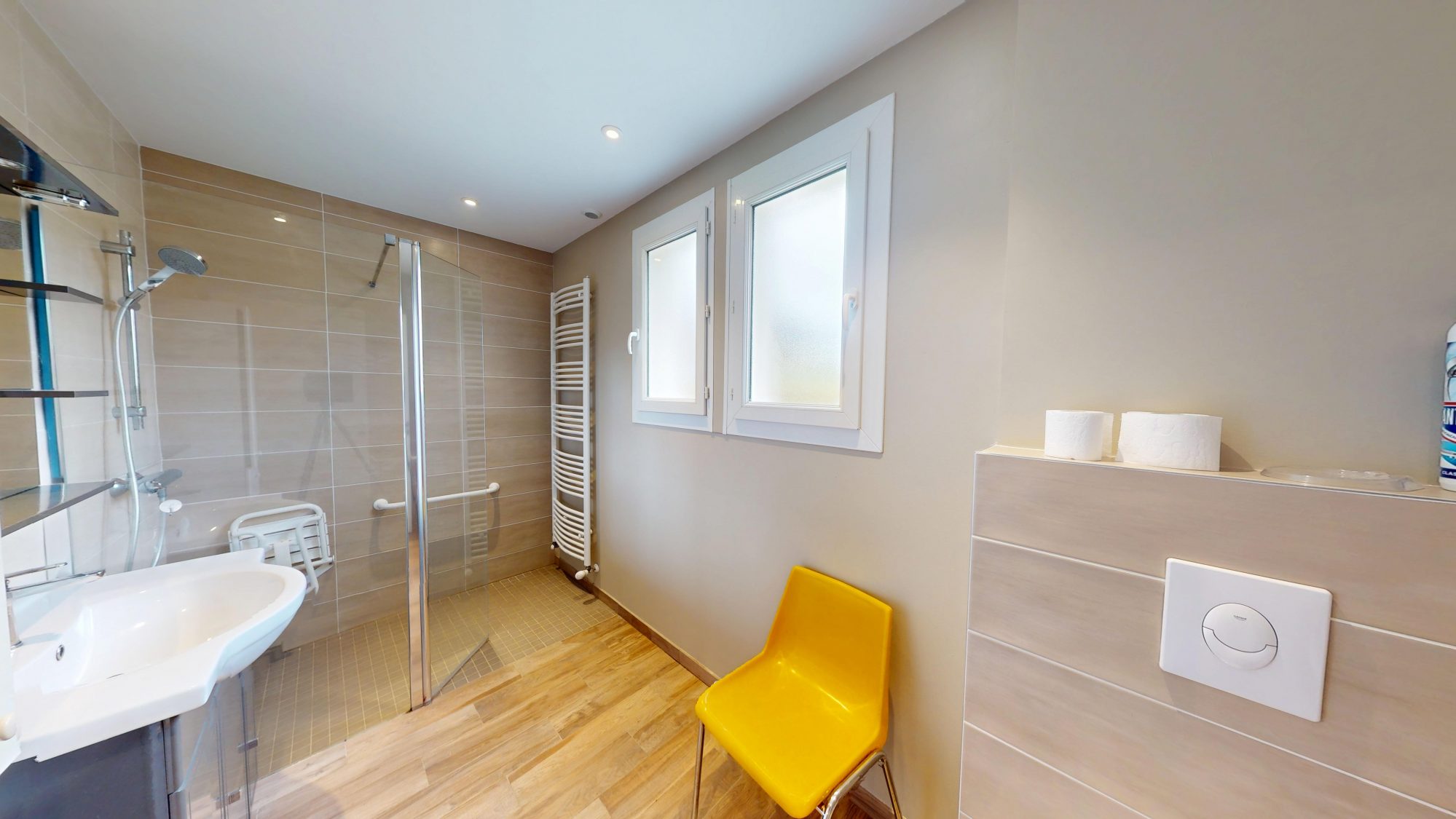 - au 1er étage : couloir, salle de bains, trois chambres dont deux avec salle