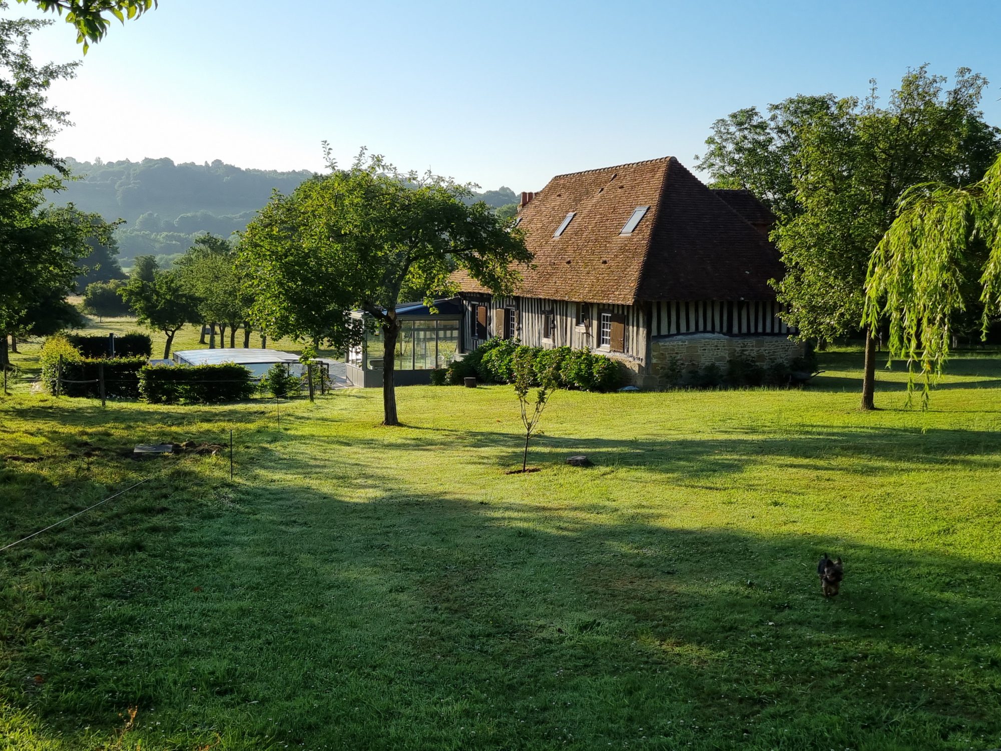 Belle propriété typiquement augeronne édifiée sur un terrain de 9,2ha (herbage, verger) avec accès à la rivière composée d’une maison principale datant du 16/17ème d’environ 200m² avec 4 chambres, une maison d’amis de 130m² avec véranda et 3 chambres et d’une maison de gardien louée de 90m² avec 2 chambres.
