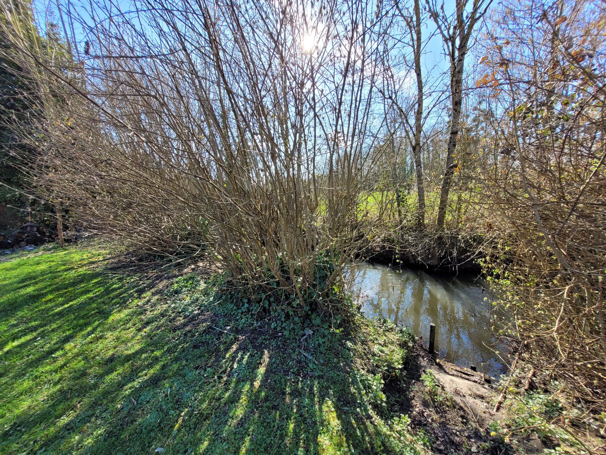 Sur l’arrière, terrain d’agrément arboré, clos avec puits, petit bâtiment en briques et autre jardin non attenant (321m2) en bord de rivière. Tout à l'égout, chauffage électrique, menuiseries double vitrage. Maison habitable de suite.